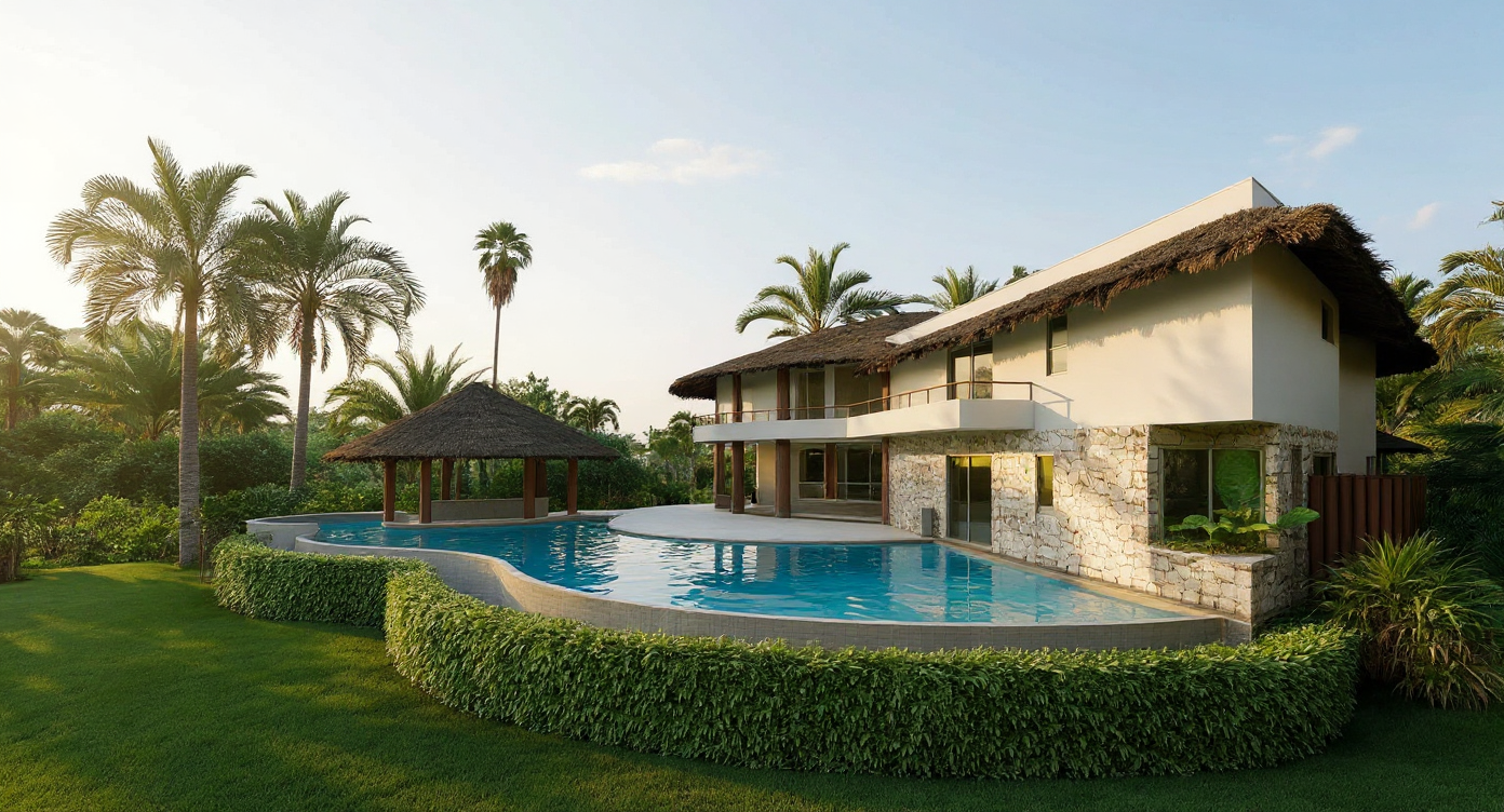 remove tanks add a infinity pool to right side where tanks are modernize look
