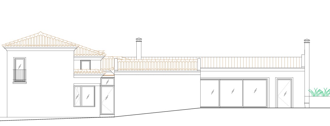 traditional spanish villa traditional roof tiles walls off white window frames white plaster mounding around windows and doors white paved driveway ramp in forground