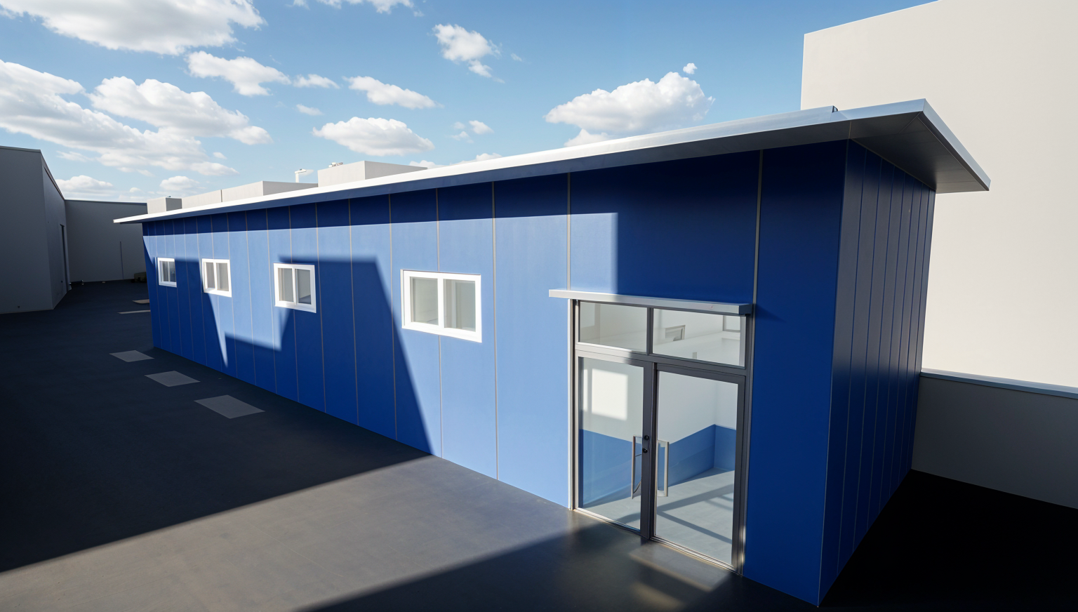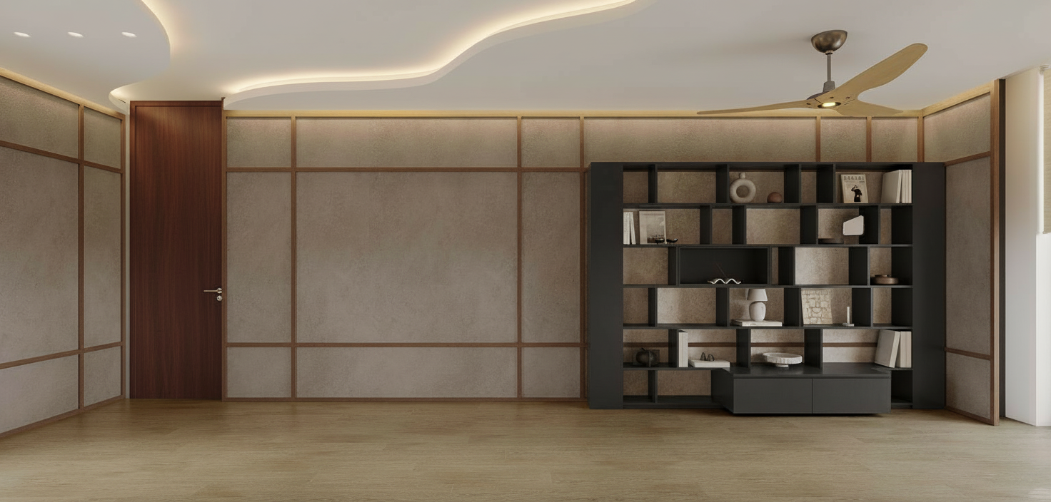 high tech interior shot modern farmhouse interior with hardwood floors light colored sunny day setting with grass fields in the background leather furniture and modern fireplace architecture