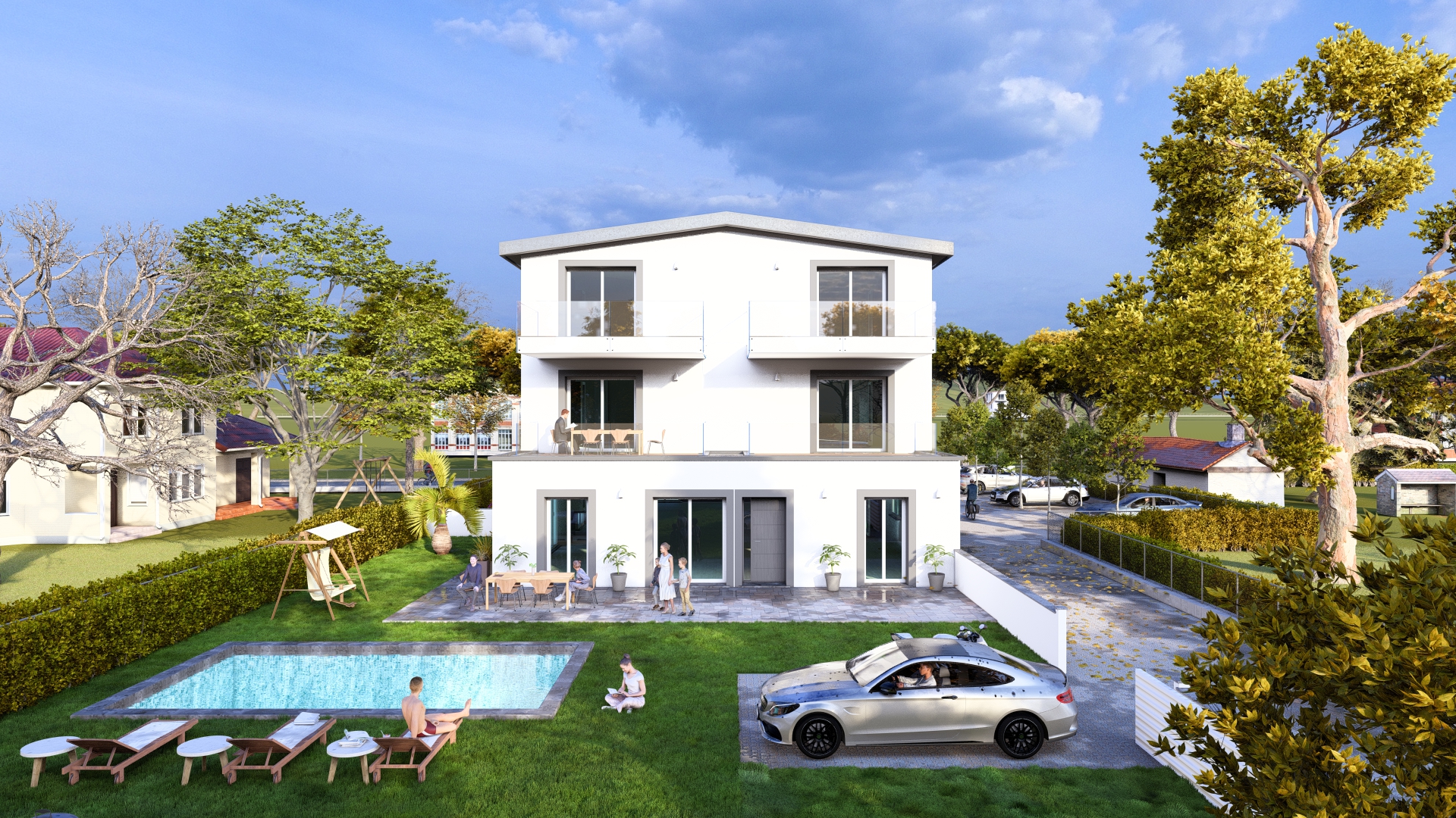 metti a tutte le finestre le cornici di spessore 20 cm in color caffelatte e tinteggia il pian oterra dell edificio in colo caffelatte tutte le altre pareti dell immobile colo bianco rimangono bianco invariato il p iano terra deve essere color caffelatte solo il piano terra
