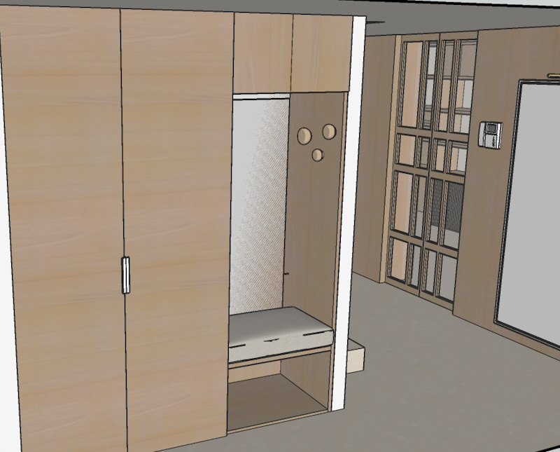 suelo de marmol beige mate sin vetas madera de nogal espejo en el hueco del armario