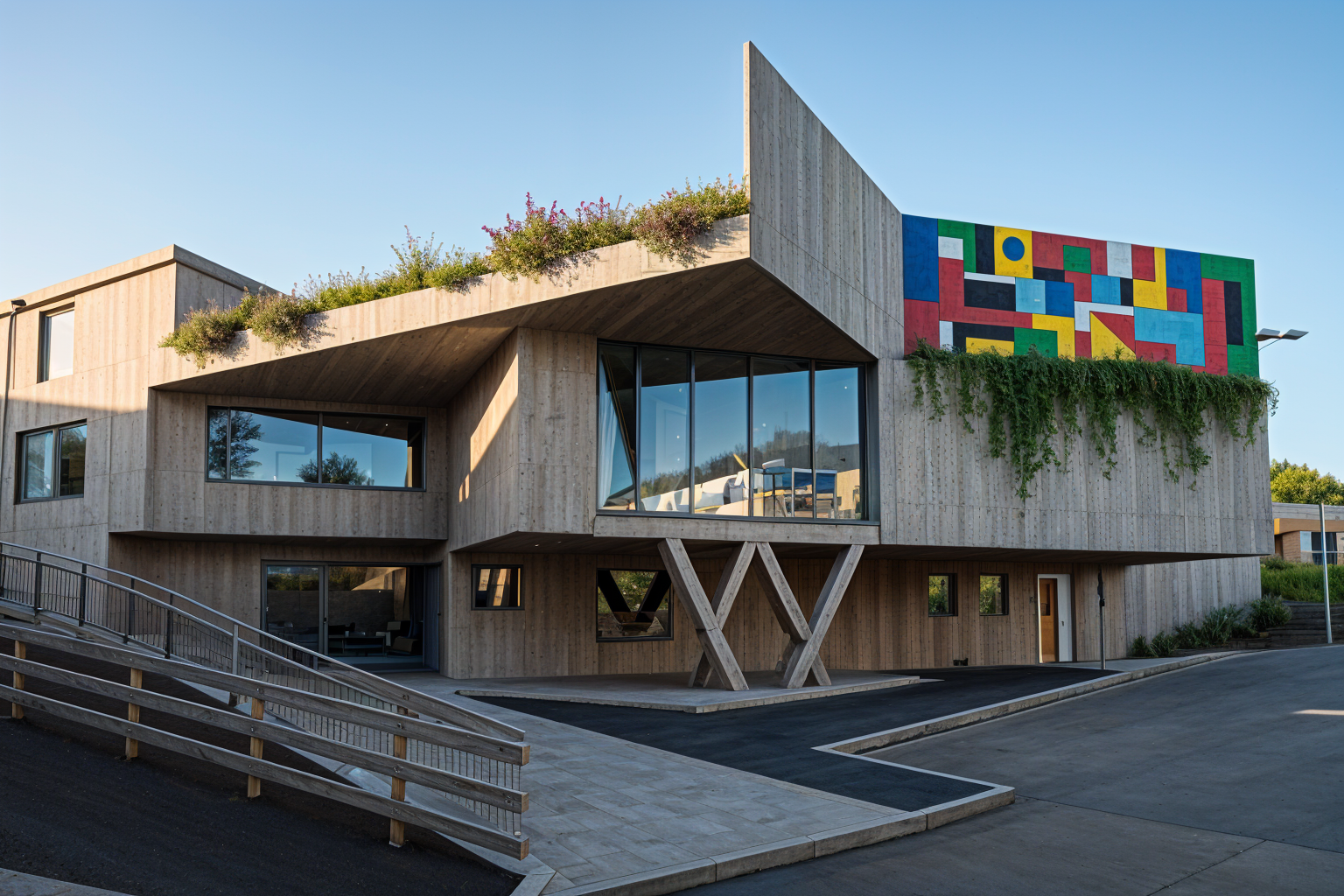 brutalism exterior shot eco brutalism primary school architecture