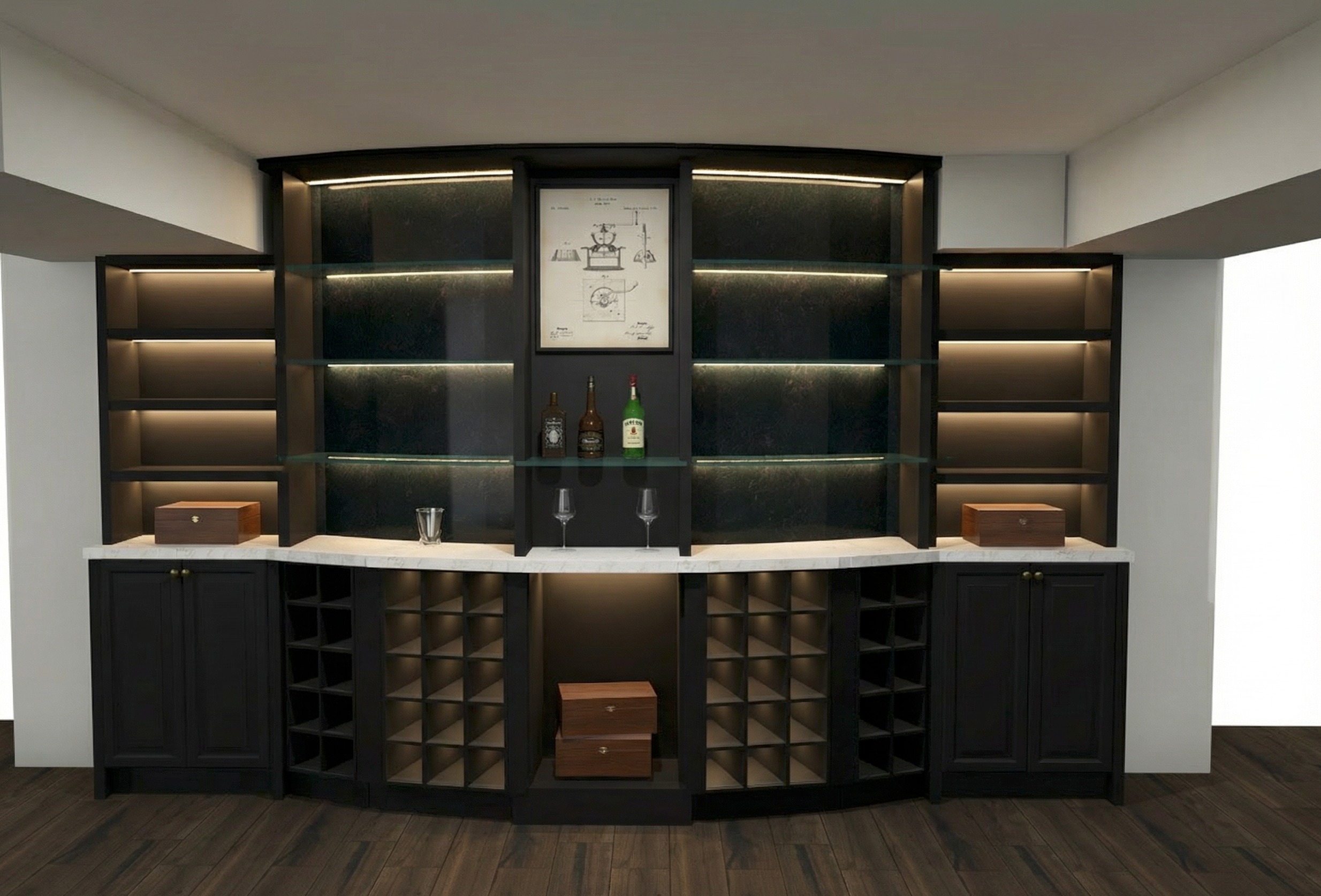 make less shelves on left and right