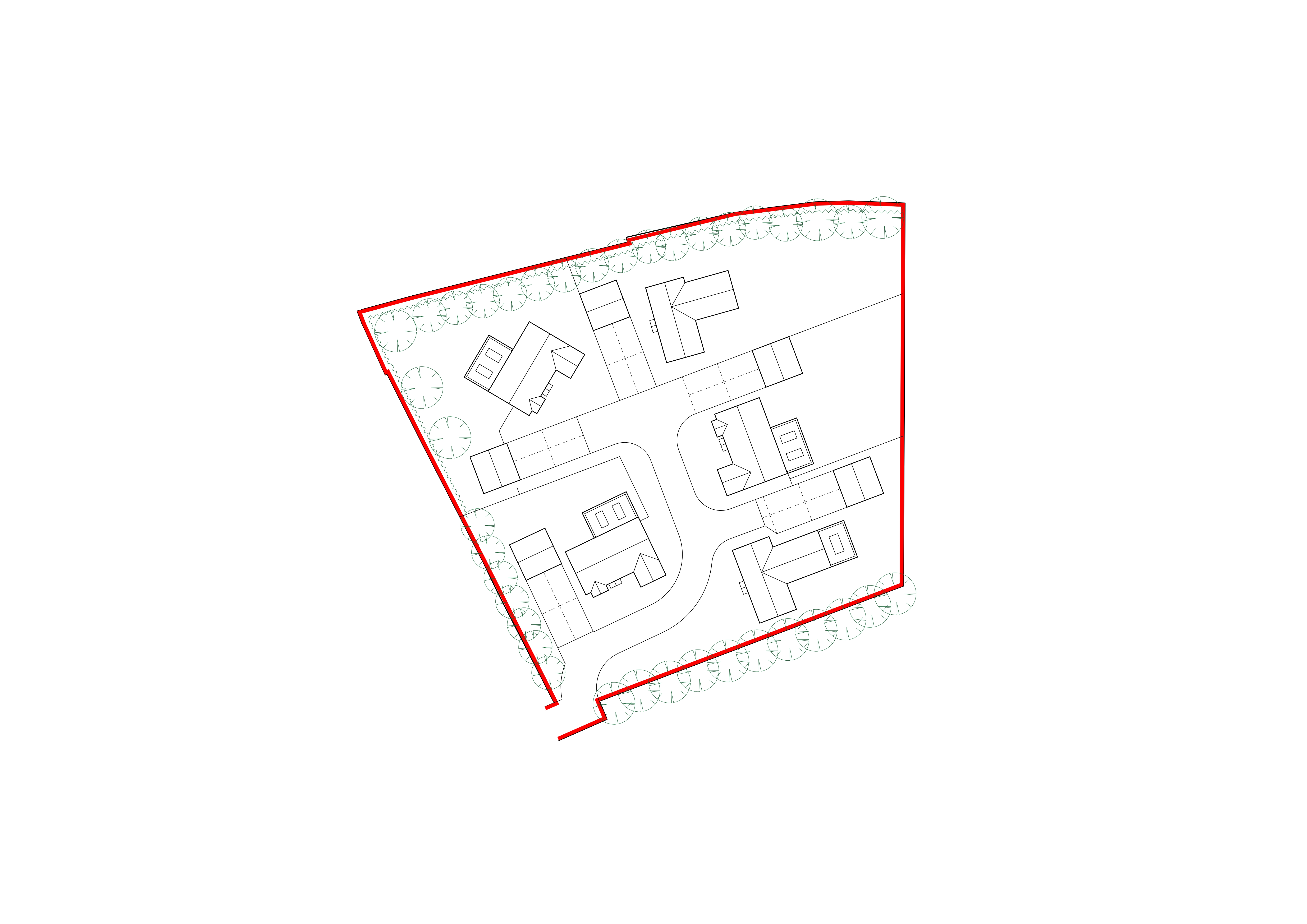 keeping the same layout render this site plan as a realistic colour drawing uk houses double garages cars gardens