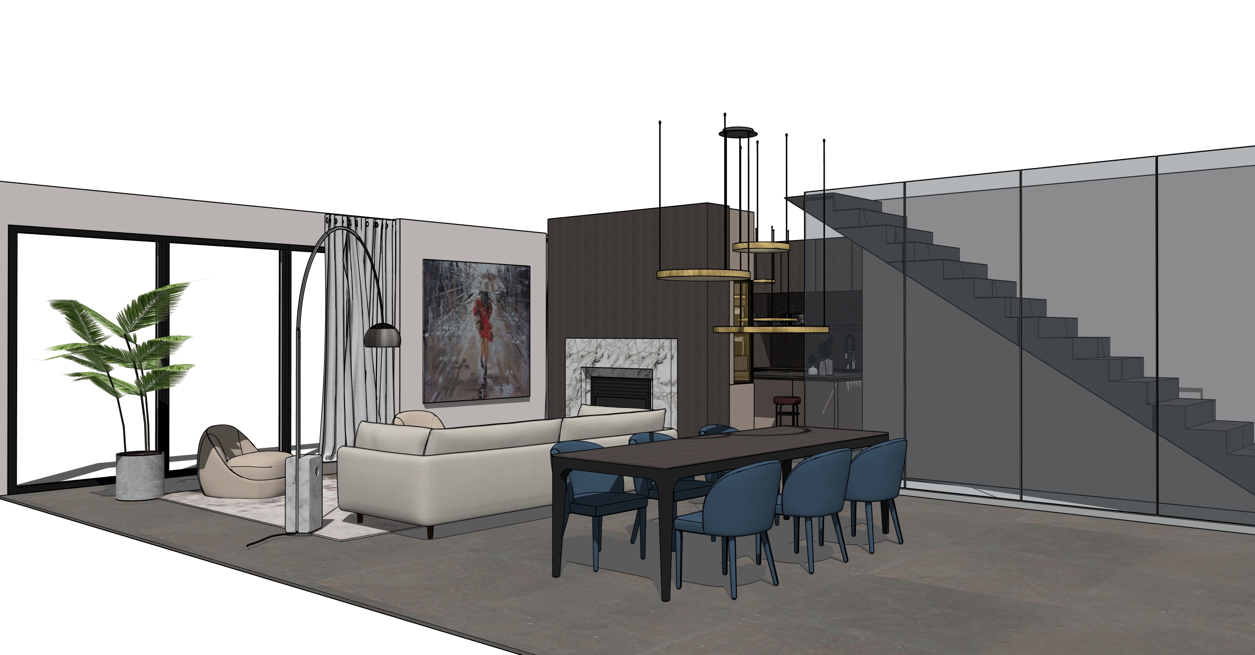 bright day time natural lighting soft shadows space is evenly liddownlights enterior photography realisticslightly reflective led ip lighting bellow the upper cabinet in the kitchen a dark teal herringbone patterned tiles on the backsplash in the kitchen black appliances