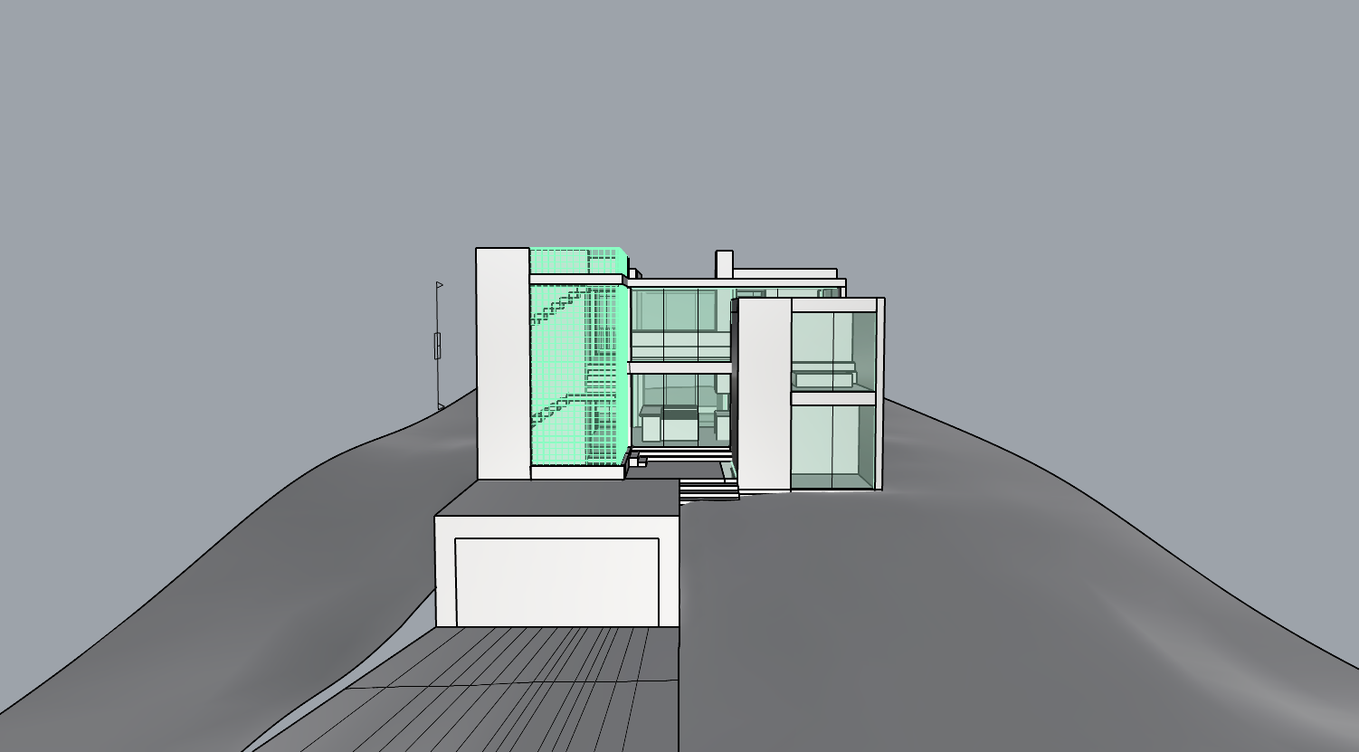 render a photorealistic 3d perspective of this mid century modern masterpiece house keep model geometry the same windows doors roof walls add mediterranean garden only enhance the current materials and add warm sunlight with atmospheric depth render in hyper realistic architectural visualization quality 8k resolution