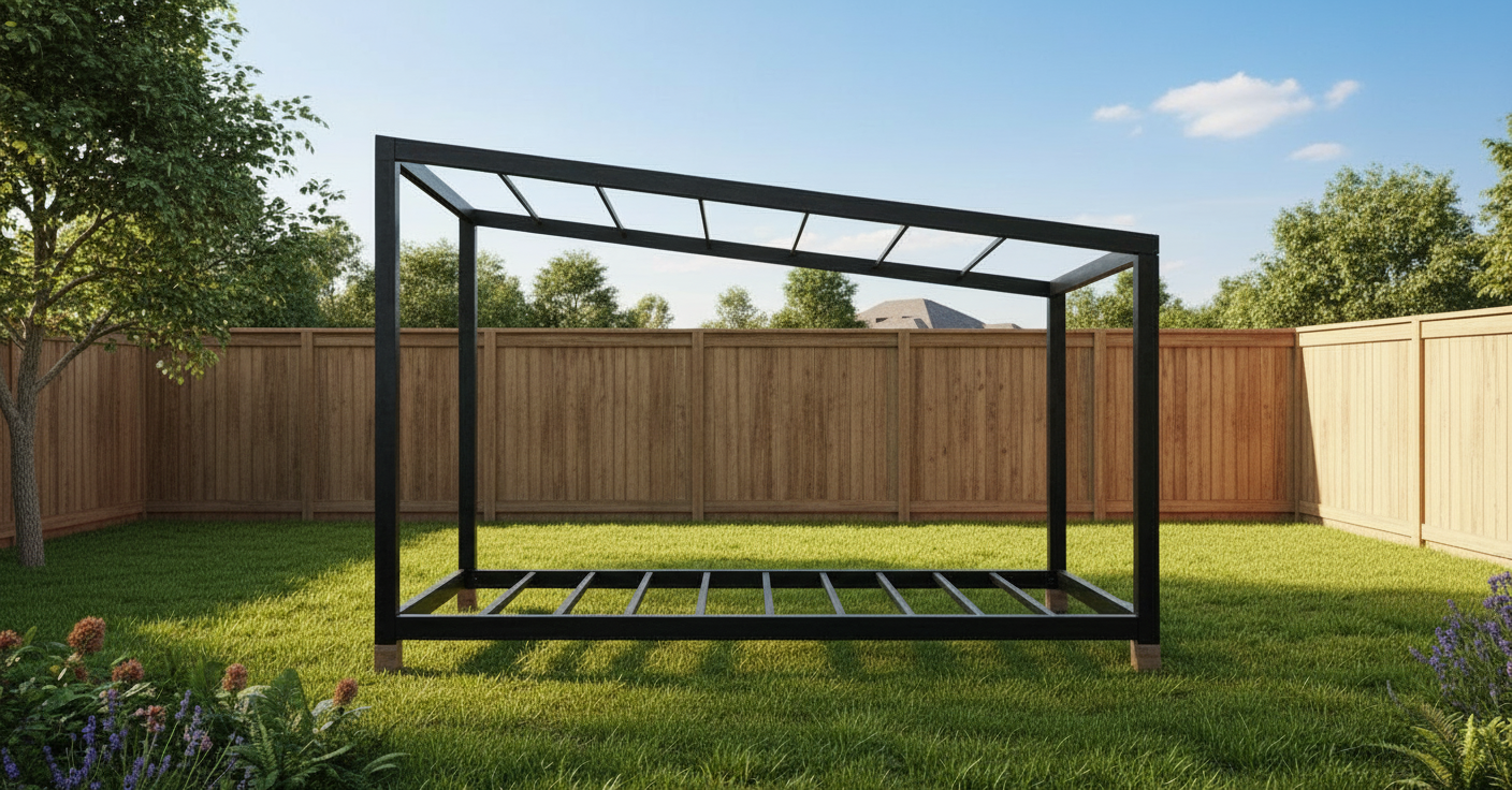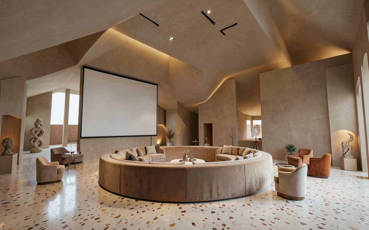 change background to a modern backyard with more concrete and seating space aroound