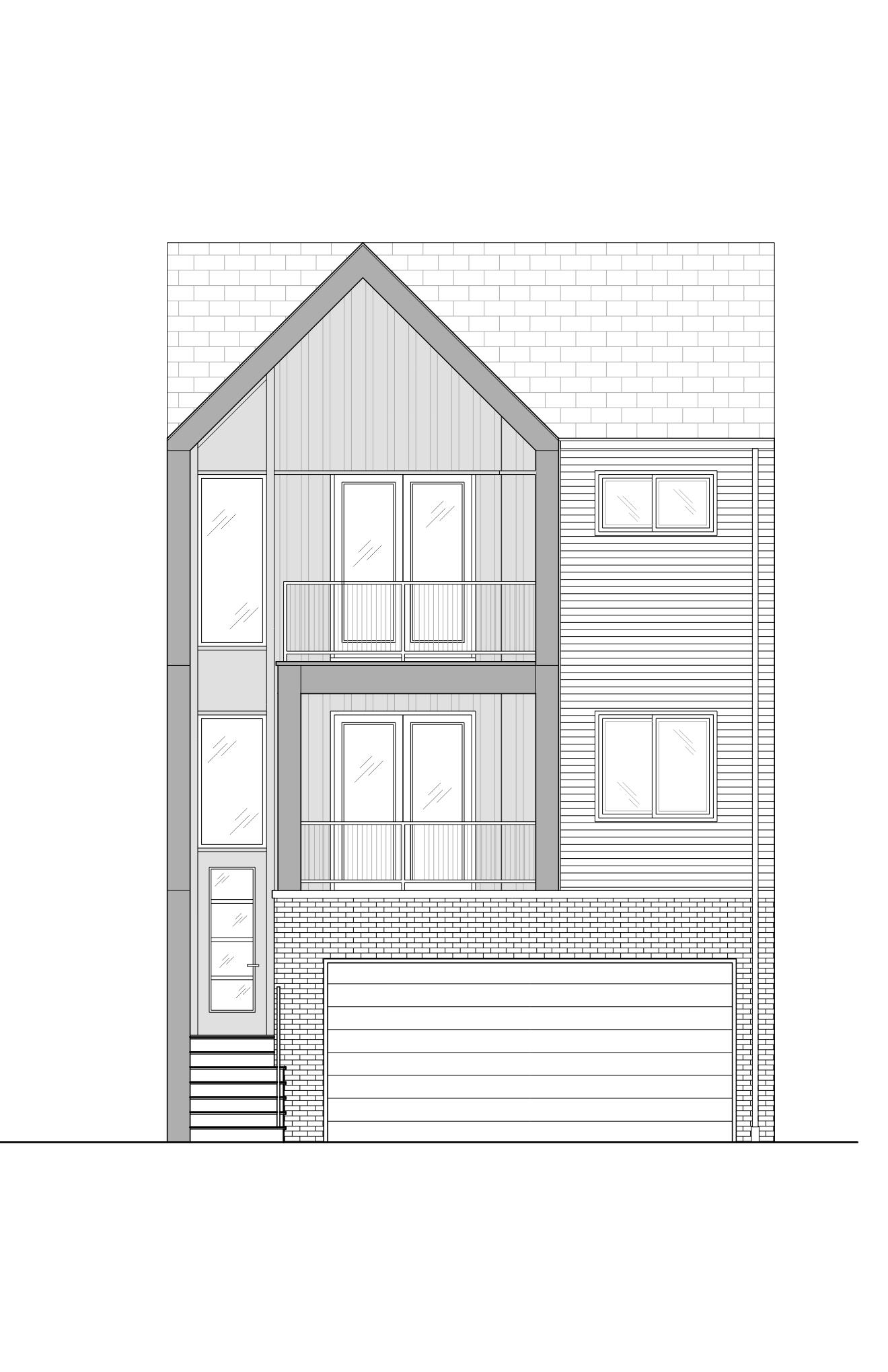 exterior shot brick at the first floor vinyl siding at the 2nd and 3rd floor shingled roof above