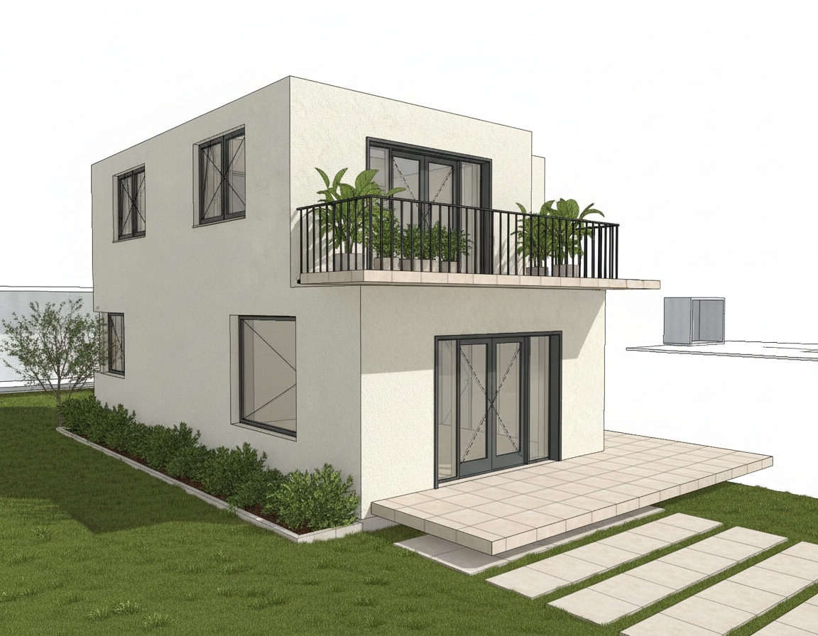 modernist exterior shot am o cladire cu 4 nivele fiecare nivel e o culoare diferita nu imi schimba dimensiunile volumului vreau doar sa faci o propunere de fatade pe volumul meu la parte comercial la restul etajelor rezidential cladirile invecinate cele cu alb vreau sa ramana simple sugestive fara sa le modifici pune si anturaje architecture