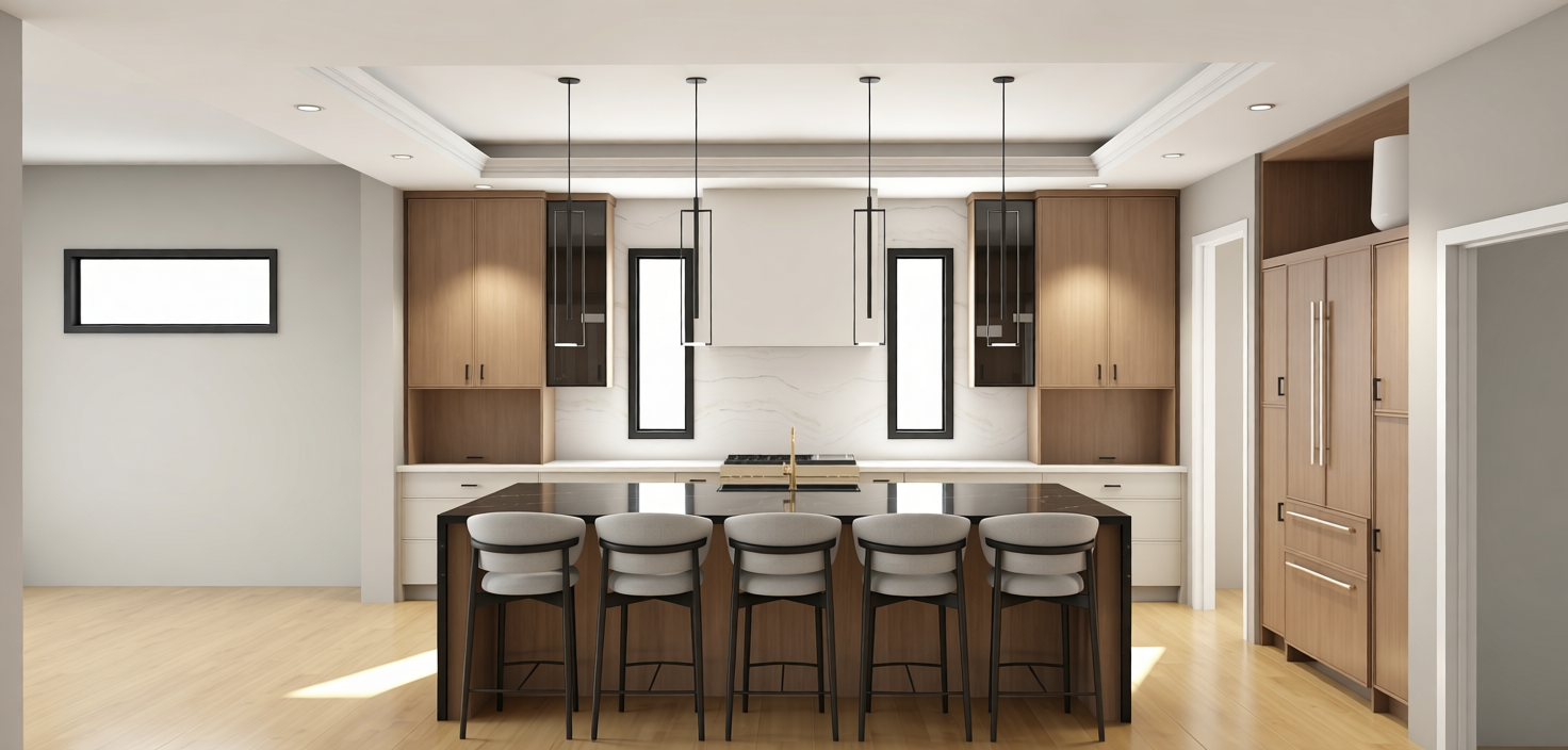 the 4x4 black tile is glossy with white grout keep ceiling black and cabinets