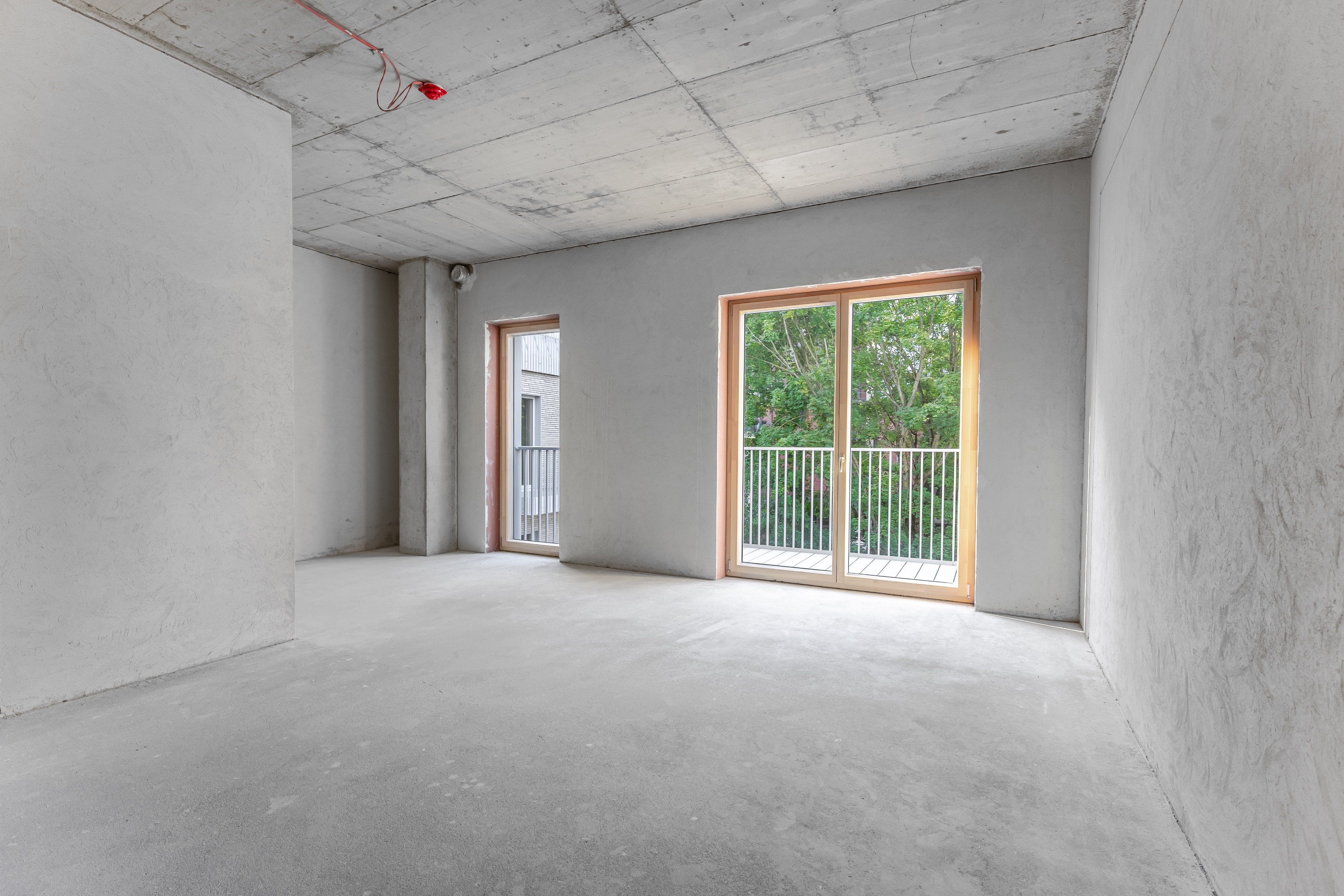 transform the existing partially finished apartment into a fully furnished modern and bright living space do not change any architectural elements including window locations room layout or dimensions use a contemporary interior design style with light and neutral color palettes modern materials and clean lines include ergonomic furniture placement integrated storage solutions and modern lighting to enhance the sense of space the apartment should feel open airy and stylish reflecting a contemporary comfortable and functional home maintain the natural flow of light and emphasize spaciousness without altering the existing structure