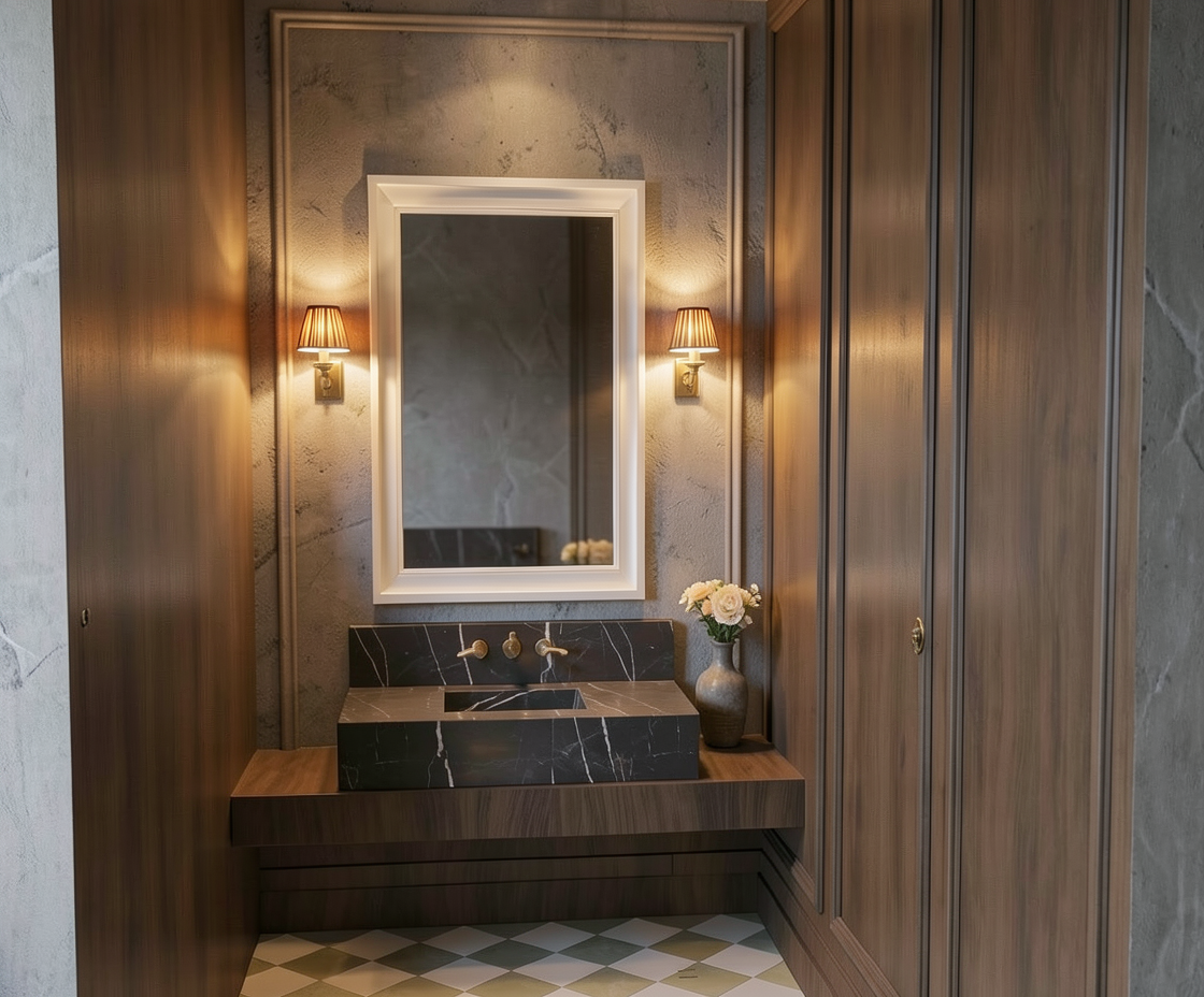 make the white gloss 1 line kitchen and make the floor in wooden oak laminate