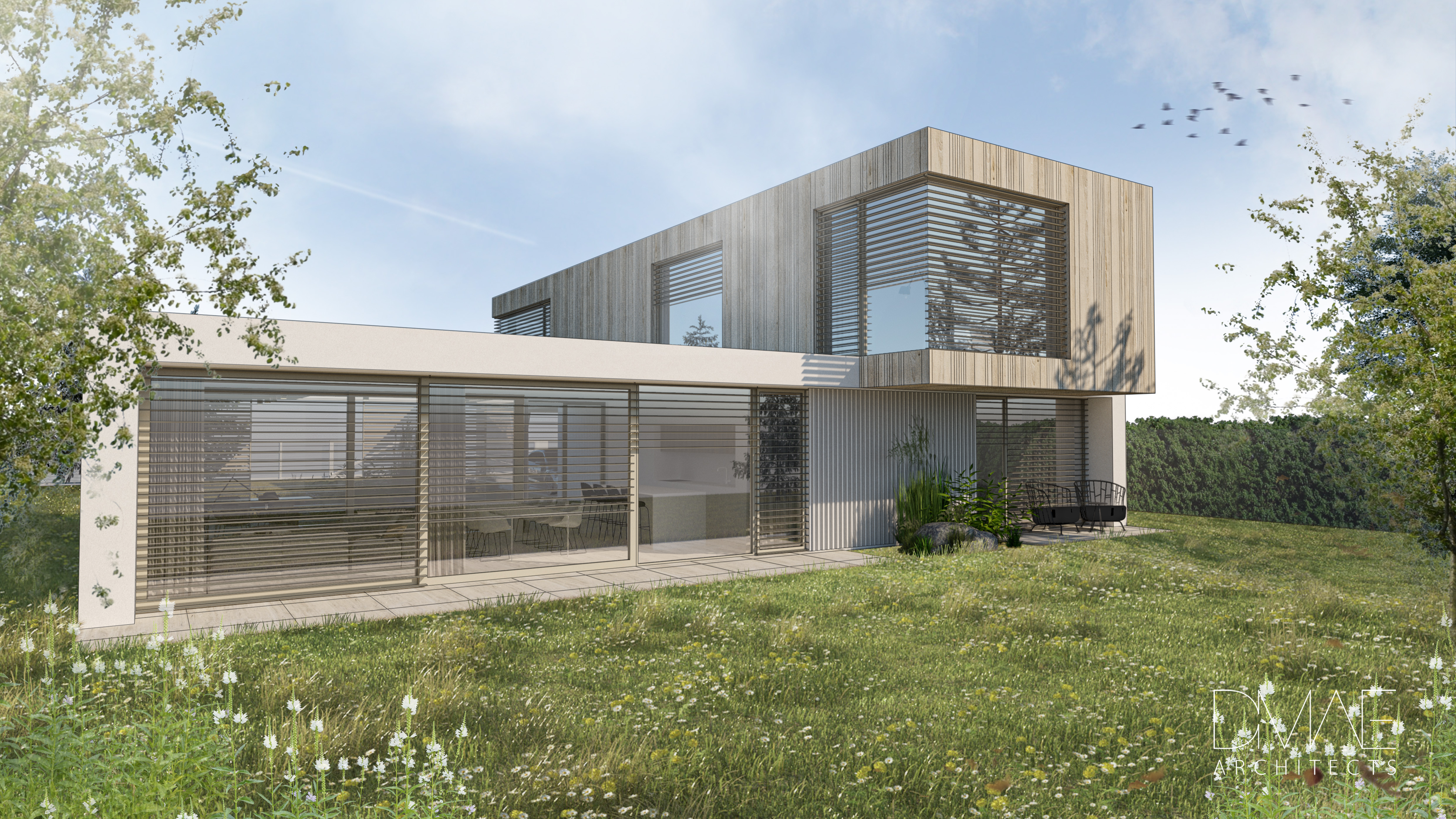 transform rough visualization into precise visualization preserve building materials soft light real garden and greenery preserve the color of the wood on the facade
