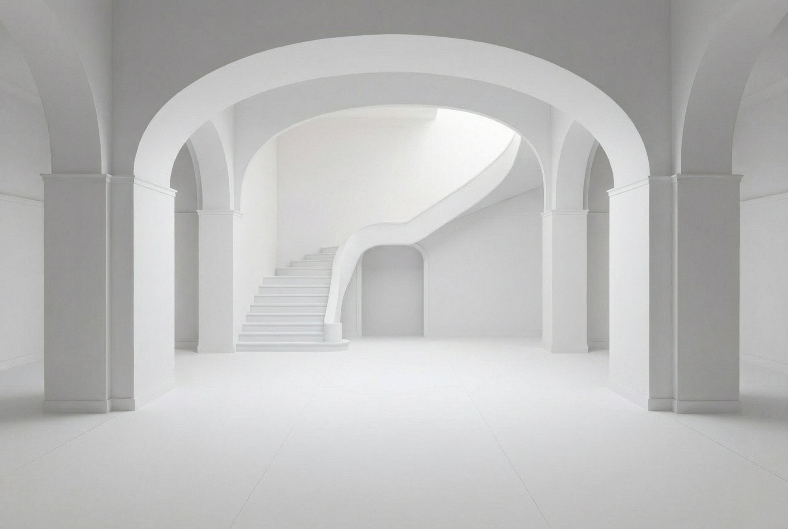 transform the white 3d hotel lobby render into a contemporary elegant interior completely empty of furniture main color ral 8016 deep reddish brown with subtle warmth accent color ral 1000 soft beige with a slight greenish tone materials modern wooden veneer in a minimalistic geometric repetitive panelled language covering the lower half of walls and columns no moldings trims or decorative elements staircase area and surrounding walls clad entirely in reflective or matte metal from floor to ceiling including staircase steps creating a dramatic sculptural hero zone walls and ceilings outside the staircase area painted close to ral 8016 on the lower half superior half painted in ral 1000 heavy plain suede like carpet in ral 8016 tight knit textiles on any built in surfaces staircase geometry unchanged no lower level railing refined in a sleek minimal modern design integrated seamlessly with the metal cladding lighting warm cinematic soft and diffuse overall pendant lamps floating organically in space ghostly and delicate smooth and rounded some tall and totemic others stout soft glowing without visible wiring illuminating the staircase and surrounding lobby atmosphere dark luxurious sophisticated intimate and cinematic volumetric lighting enhances reflections on metal subtle highlights on ral 8016 surfaces and gentle interaction with ral 1000 upper walls composition wide angle view emphasizing the staircase and full height metal clad walls as the main conceptual focal point architectural lines arches and spatial flow guide the eye toward it soft shadows golden highlights and layered textures create depth tactile realism and dramatic contrast render style photorealistic richly textured immersive high contrast architectural magazine quality cinematic dramatic and artistic
