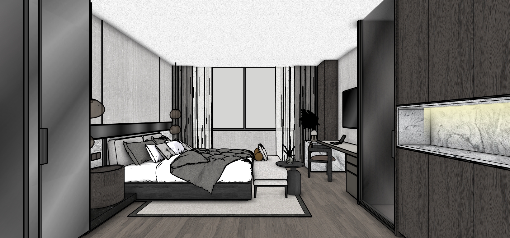modern lux in darker theme with smooth natural light light up the hanging light