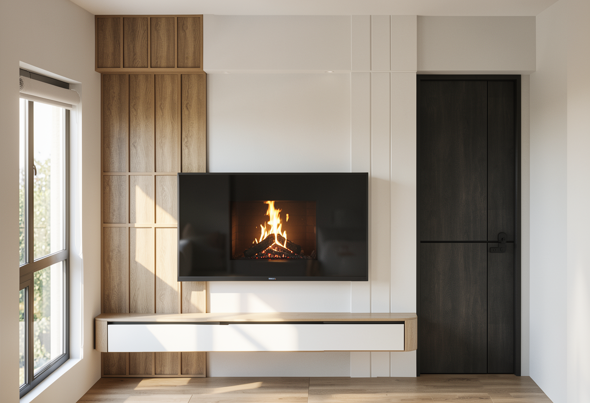 add items to the open shelving add ambent light on top of the open shelving