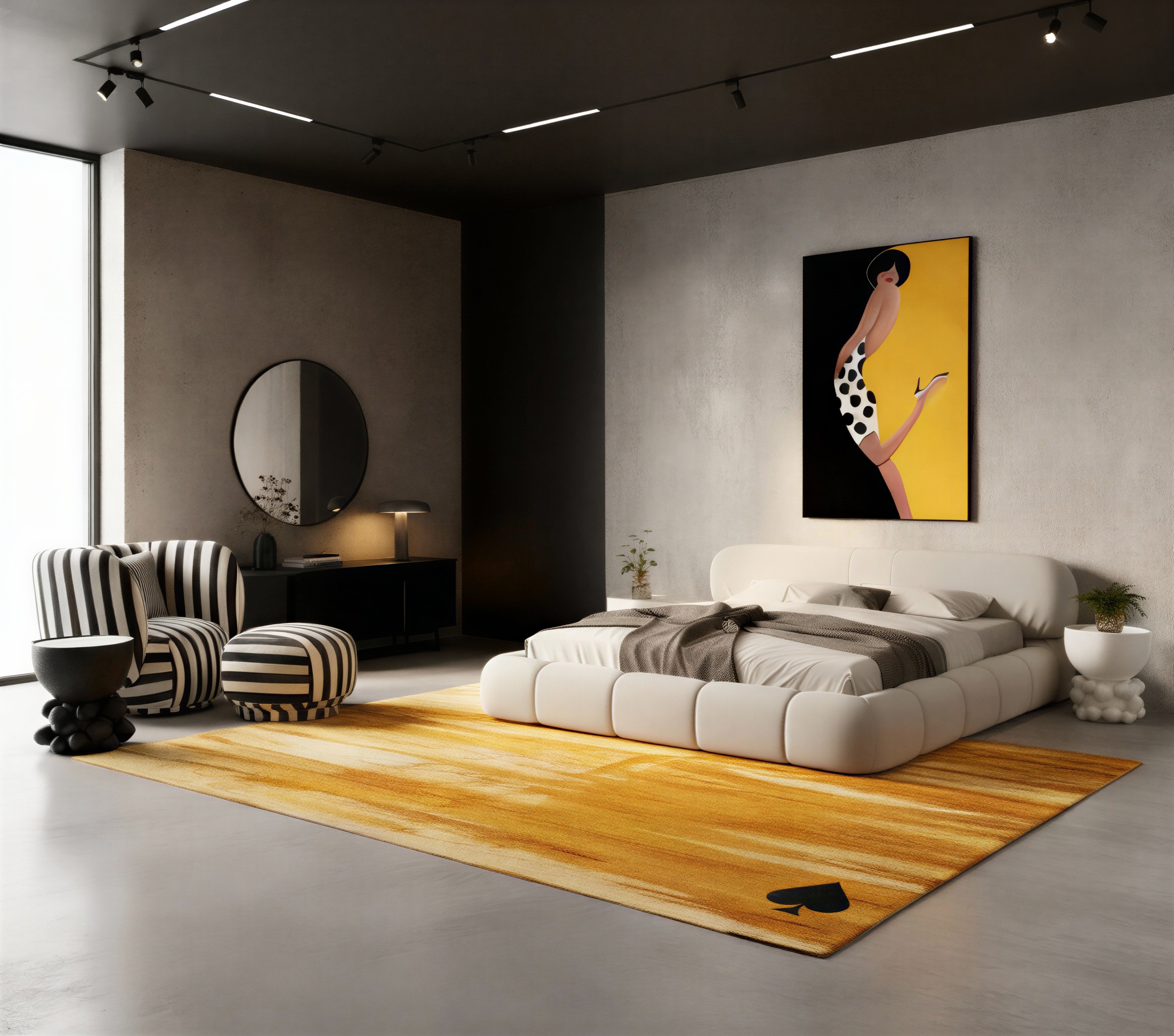 remove the plants add black stainless steel legs to the arm chair and the buff
