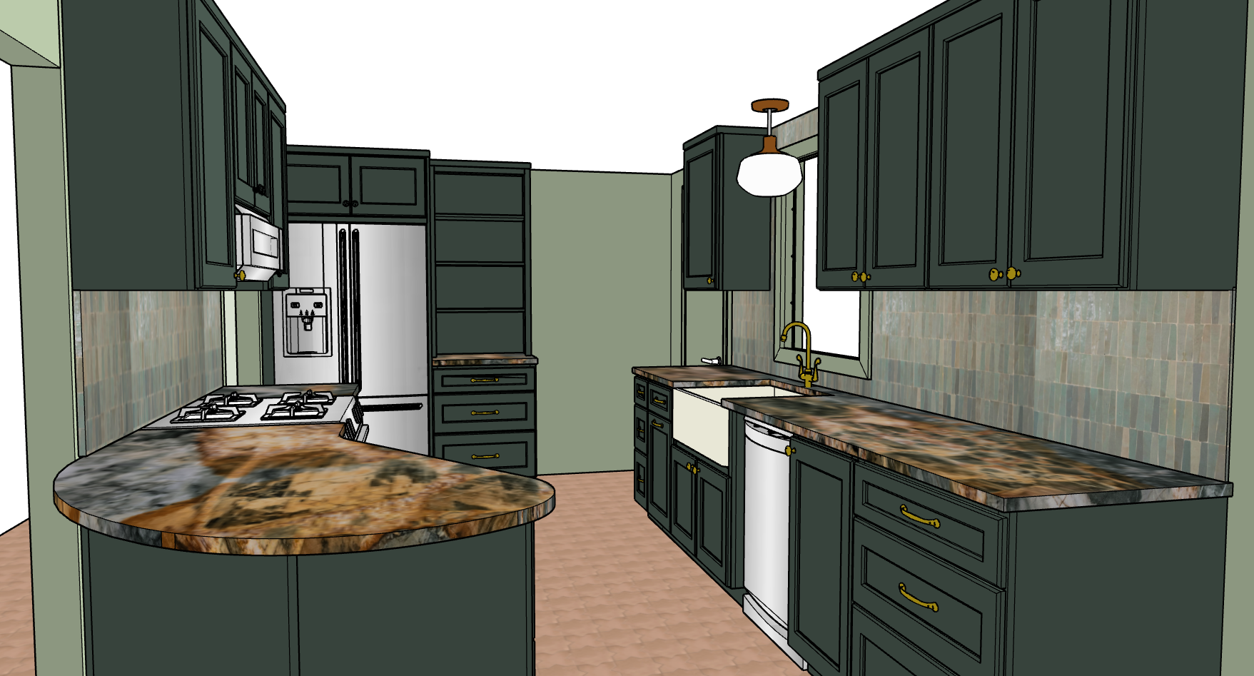 render this kitchen model with realistic lighting and recessed ceiling lights