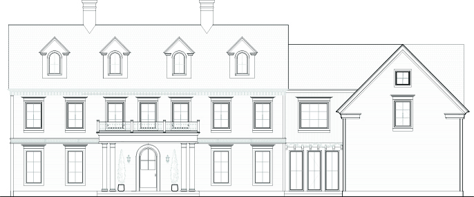 white colonial with white trim white corner boards stone balustrade above portico ivy climbing up right side of house