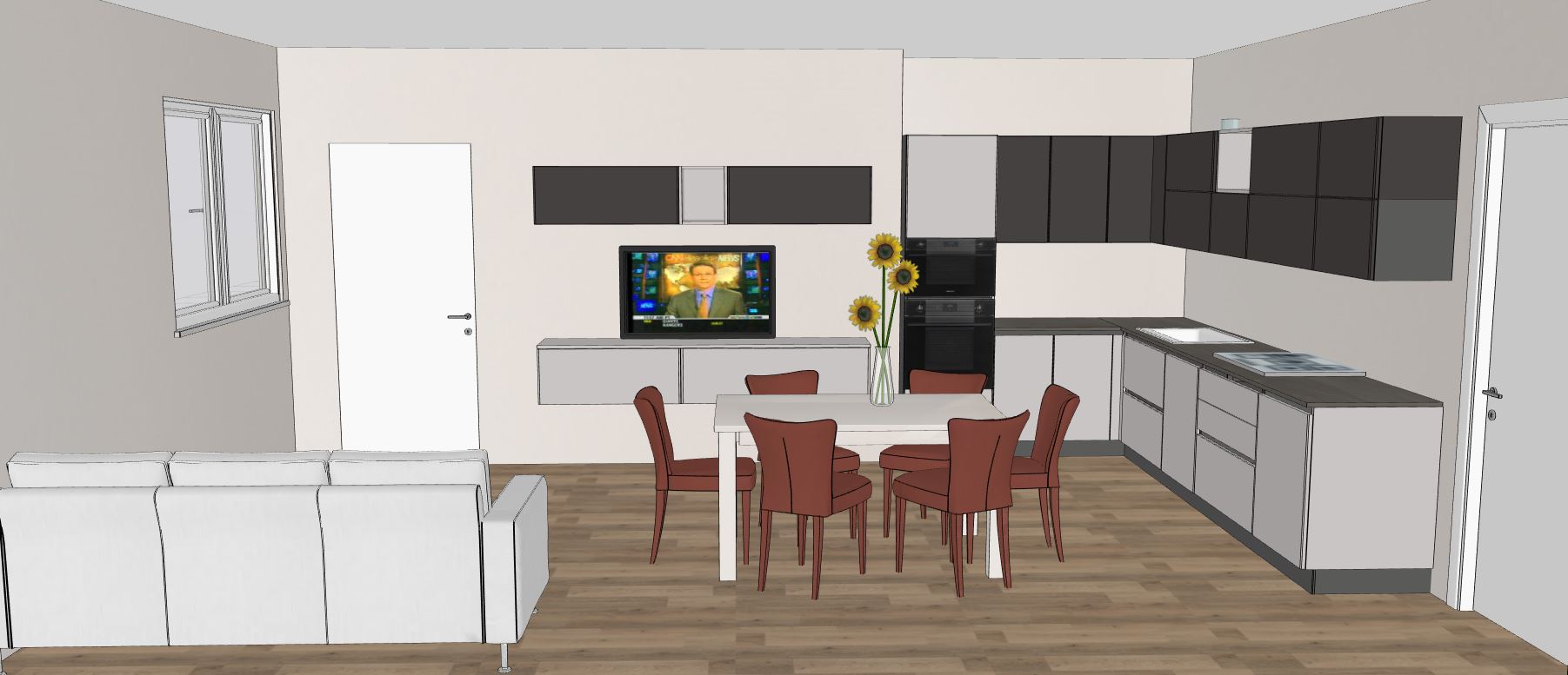 aggiungere oggitti su arredi e renderizzare con luce naturale dalla finestra togliere qualche pianta