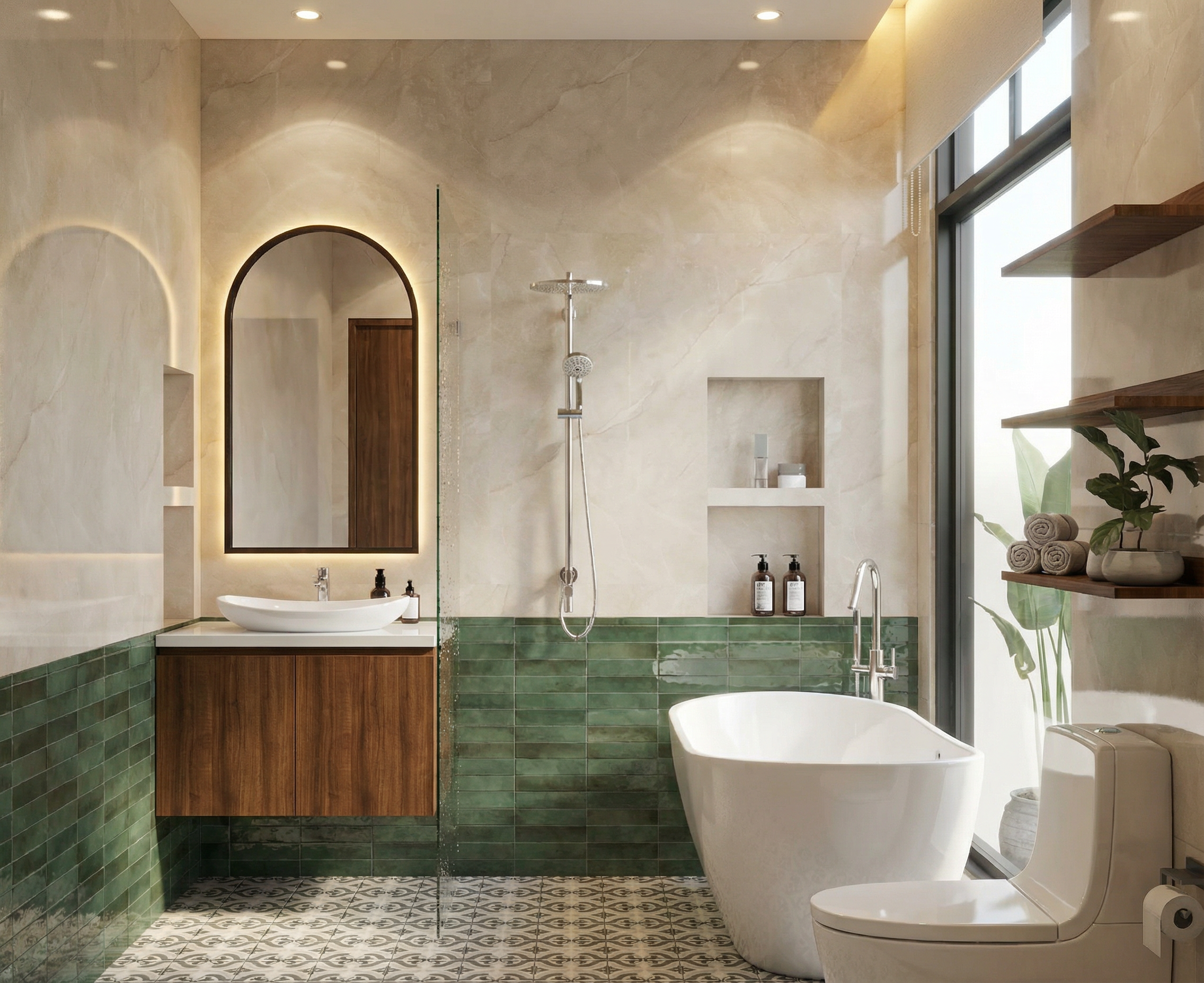 generisi mi render objekta koji je na slici belom bojom obojen tako da je svaki providni deo staklo i ne menjaj geometriju objekta a od ovih zelenih kaskada napravi brdo u kom se useca moj objekat i napravi ceo ambijent iza kao da je neka polu suma