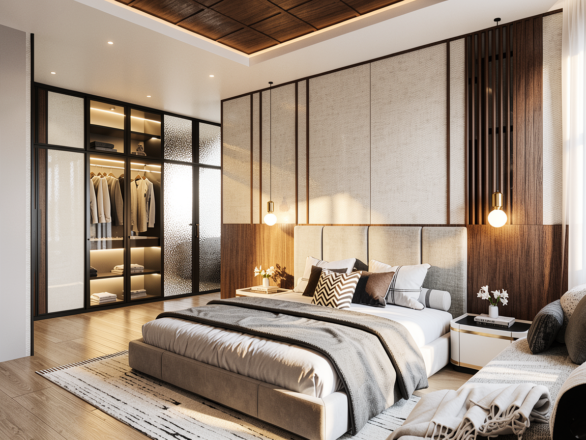 a highly detailed photorealistic architectural visualization of the specific modern four story tiered building derived from image 0 png and image 4 png strictly maintain the exact geometric volume four tiered levels window placements and detailed glass balconies consistent with the reference geometry do not simplify the tiered structure or merge levels the facade design must be a highly intricate and creative blending dynamic juxtaposing and interspersed pattern utilizing only the material palette of aged textured antique style reclaimed brick masonry natural warm oak wood vertical slat paneling and clean white modern tencuial plaster the distribution of these three materials must be dynamic fragmented and artistic across all four levels breaking the horizontal lines of the floors to form a visually rich complex and unpredictable contemporary pattern focus the material detail on all street facing and side facades maintain the simplified white neighbor volumes and clear natural daylight lighting as identical the surrounding street details vehicles and scattered people must remain the same for scale the trees are positioned in the distance and clear of the immediate vicinity of the surrounding context buildings keeping them distinct