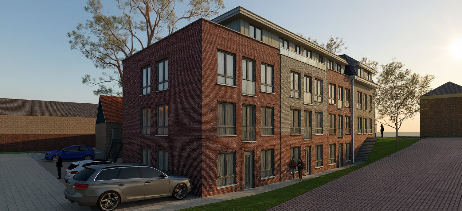 add curtains behind windows change trees for oak trees point sun on other facade trees are in the background