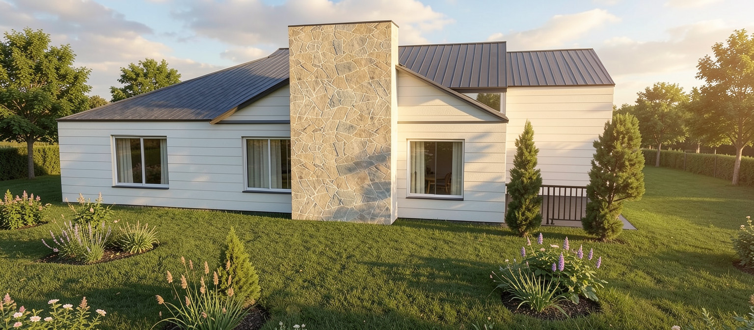 ajuster la toiture en bardeau noir remplacher la pierre par une pierre naturel gris