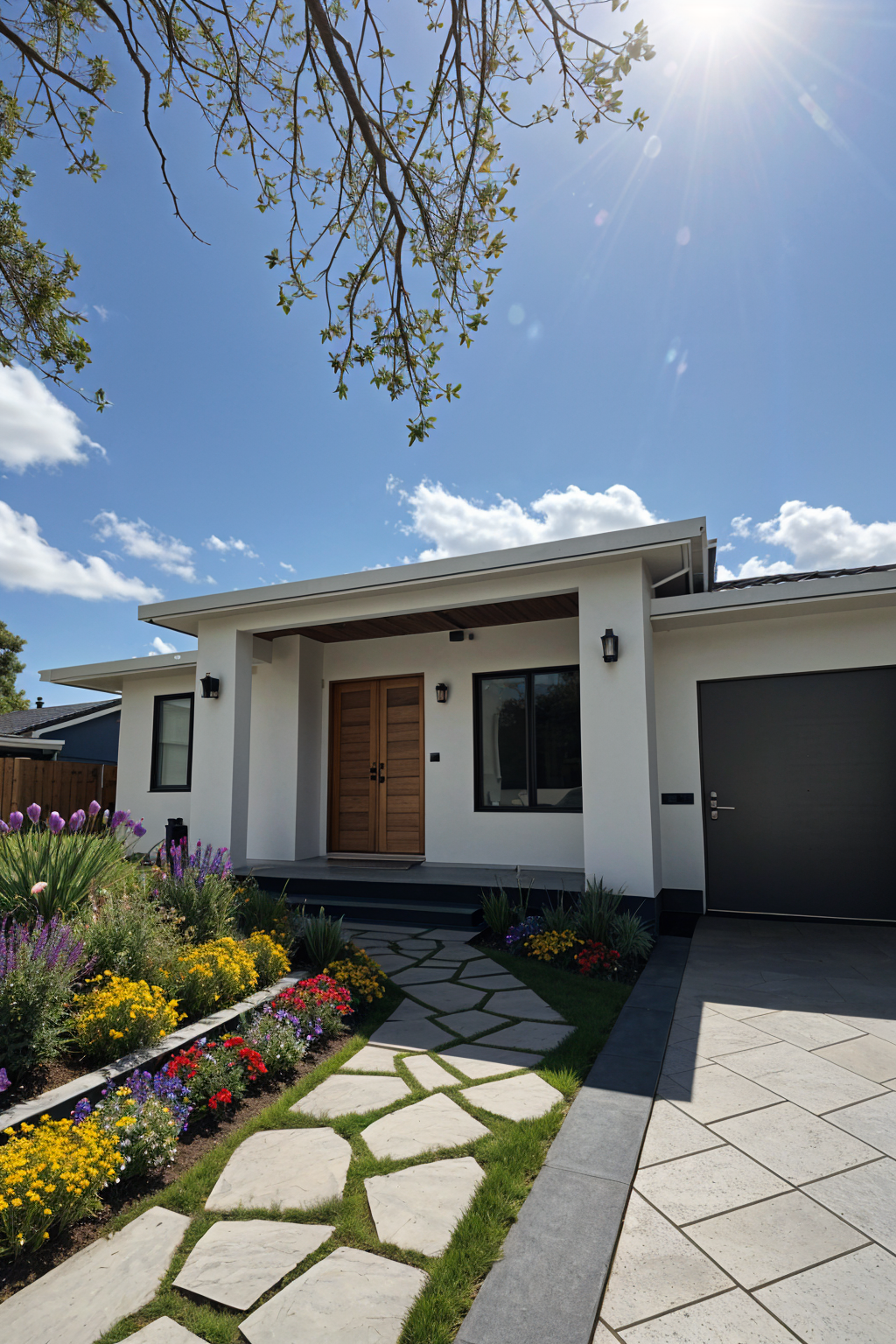 modernist exterior shot stone and white painted batt board siding with black shingles black windows and cedar accents and cedat porch post light the inside up architecture