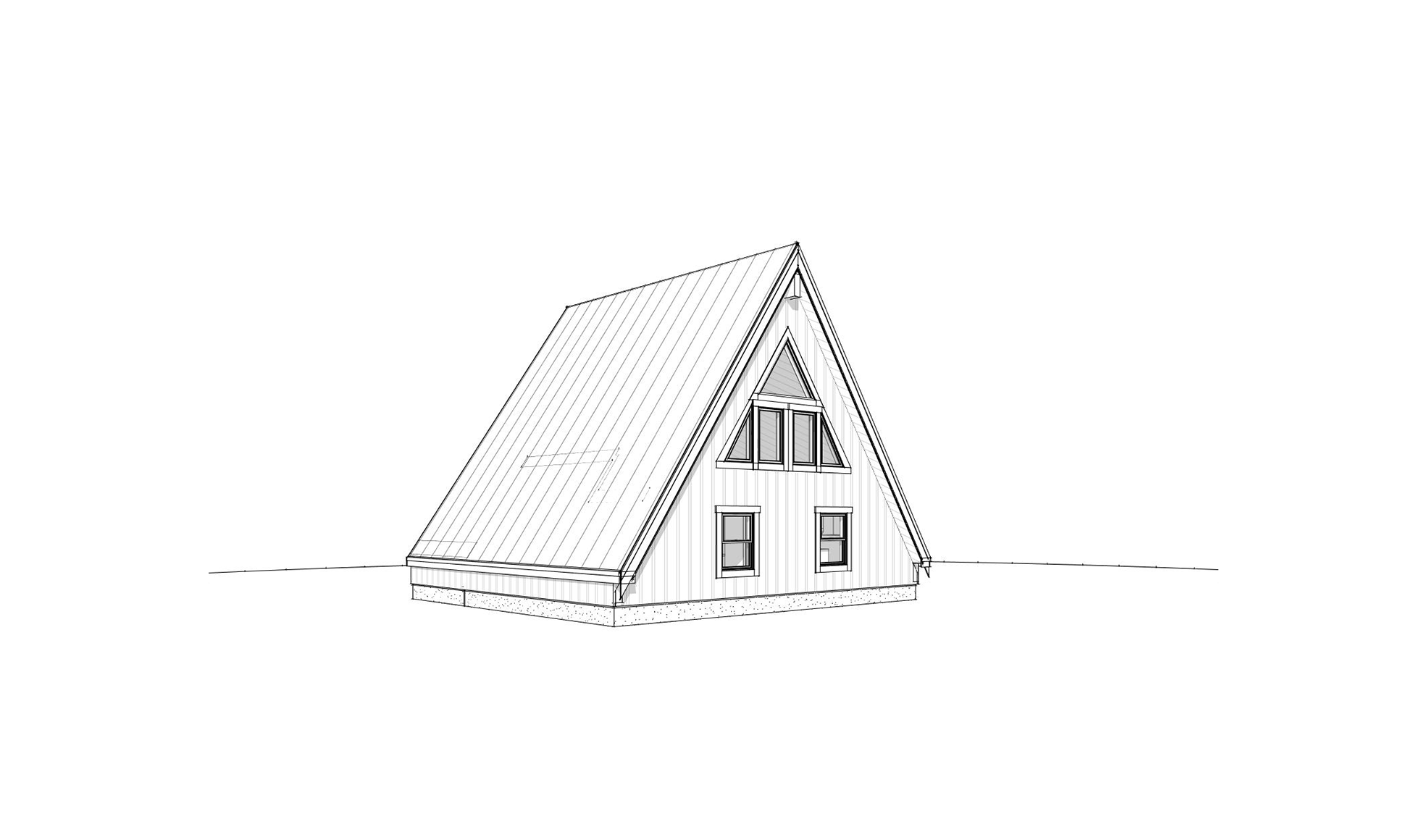 front view of a clean rustic a frame cabin architectural exterior home rendered in cinematic vibrant golden hour lighting with big clouds in the sky cabin in the forrest with streaks of light coming through the trees warm glow and reflections off of the windows rustic select grade vertical warm wood cedar siding green manicured landscape around structure with gardens and patches of grass black standing seam metal roof prominent cinematic forest with big douglas fir trees and ferns and moss surrounding behind the house in the background high fidelity photorealistic visualization crisp shadow falloff refined facade geometry soft atmospheric depth premium architectural photography mood ultra clean composition and materials dark trim around windows flat roof photorealistic render concrete path leading to the front door
