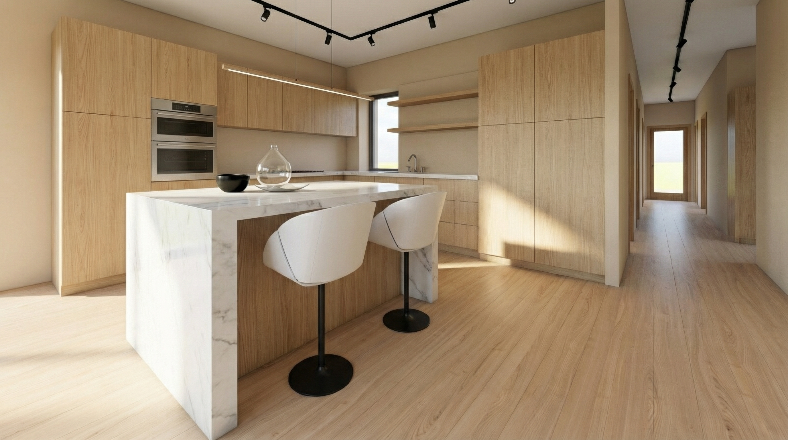 absolute constraint no geometry changes do not modify move scale rotate add or remove any geometry preserve exact container positions offsets platforms fences and ground planes all transformation must occur through materials textures lighting and surface articulation only overall intent mood render the project as a contemporary coastal installation where natural materials are used in a precise sculptural and architectural way the atmosphere is calm minimal and curated raw materials refined execution lighting suggests golden hour with soft contrast and long shadows material assignment by function 1 entrance container foreground sculptural ticket tunnel geometry remains exactly as modeled the entrance container is wrapped in sculptural thatching treated as a designed skin tightly bundled reed straw elements linear or subtly patterned arrangement controlled thickness and sharp edges clean terminations no loose or rustic detailing thatching reads as a textural cladding system not a traditional roof the surface feels crafted deliberate and contemporary interior expression visible through openings interior surfaces clad in warm golden metal panels satin brushed finish with subtle glow the golden core feels like a refined object hidden inside a natural shell wooden platform precise timber decking clean joints matte finish slight weathering but controlled and architectural 2 restaurant containers right side geometry unchanged calm hospitality driven material palette smooth limewash or plaster in warm sand tones selective use of wood or woven panels minimal modern beach adjacent not rustic fence between restaurants vertical or horizontal reed timber elements clean rhythm graphic composition semi transparent architectural 3 washroom containers left background geometry preserved robust quiet materiality mineral plaster or stone like textures muted slightly darker tones subordinate and discreet 4 beach area far background natural sand textures lightweight seating and umbrellas simple neutral palette rendered softly to remain background lighting atmosphere warm low angle sunlight sculptural shadows emphasizing texture subtle interior glow from entrance container no decorative fixtures or visible hardware rendering style high end architectural visualization minimal composition warm cinematic color grading emphasis on texture shadow and material contrast optional negative prompt highly recommended avoid rustic folkloric or vernacular styling no messy straw no uneven thatch roofs no beach huts no tropical resort clich s no industrial container aesthetics