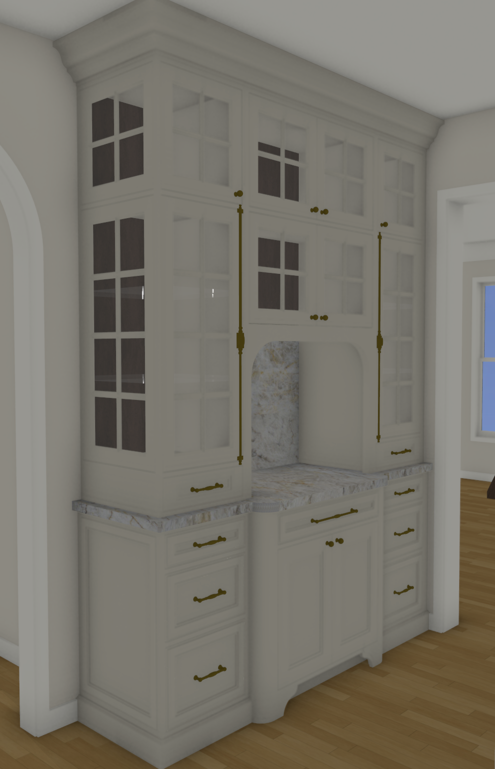 maintain colors render the same style as the previous image add dim lighting in cabinetry