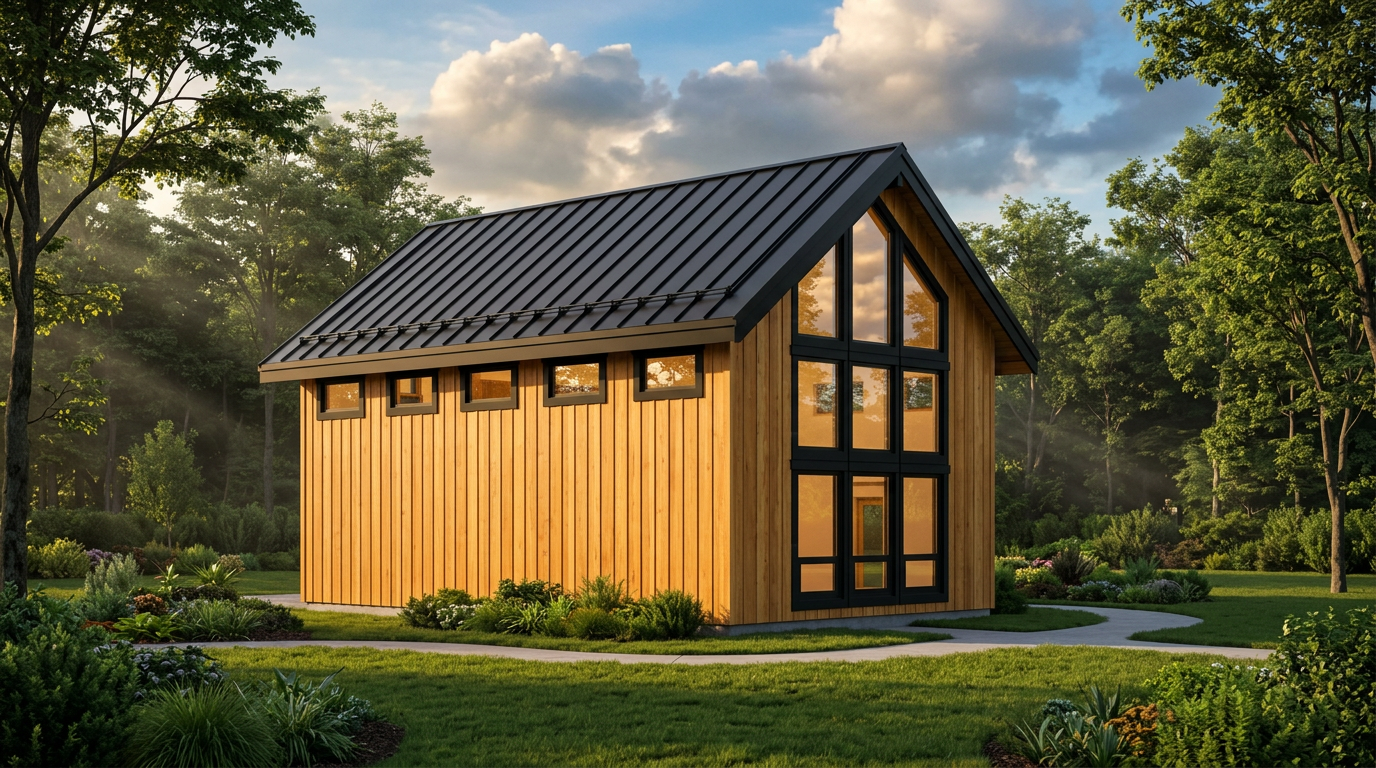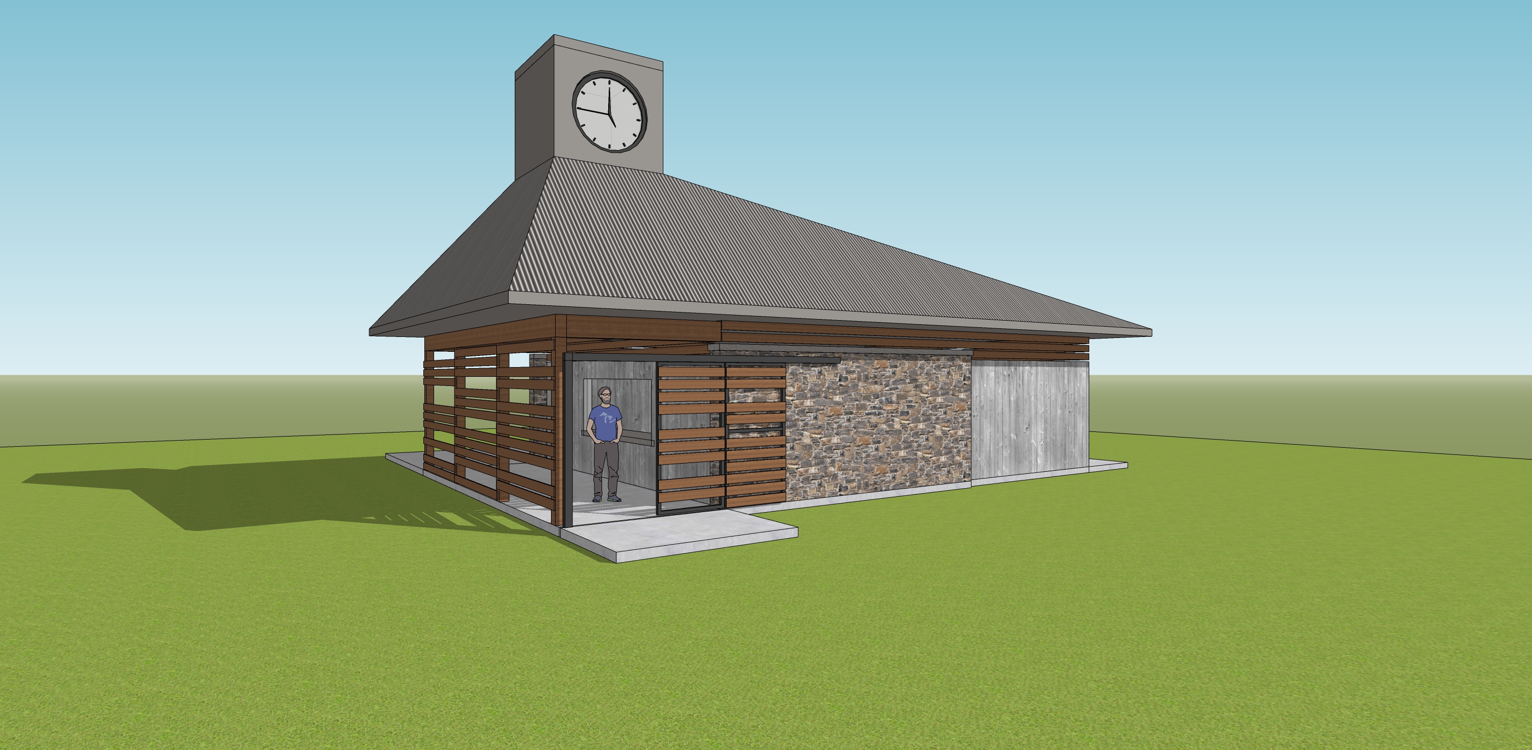 make this building look like its on the shore of a large lake with forested hills surrounding the lake keep all the details of the building exactly as shown