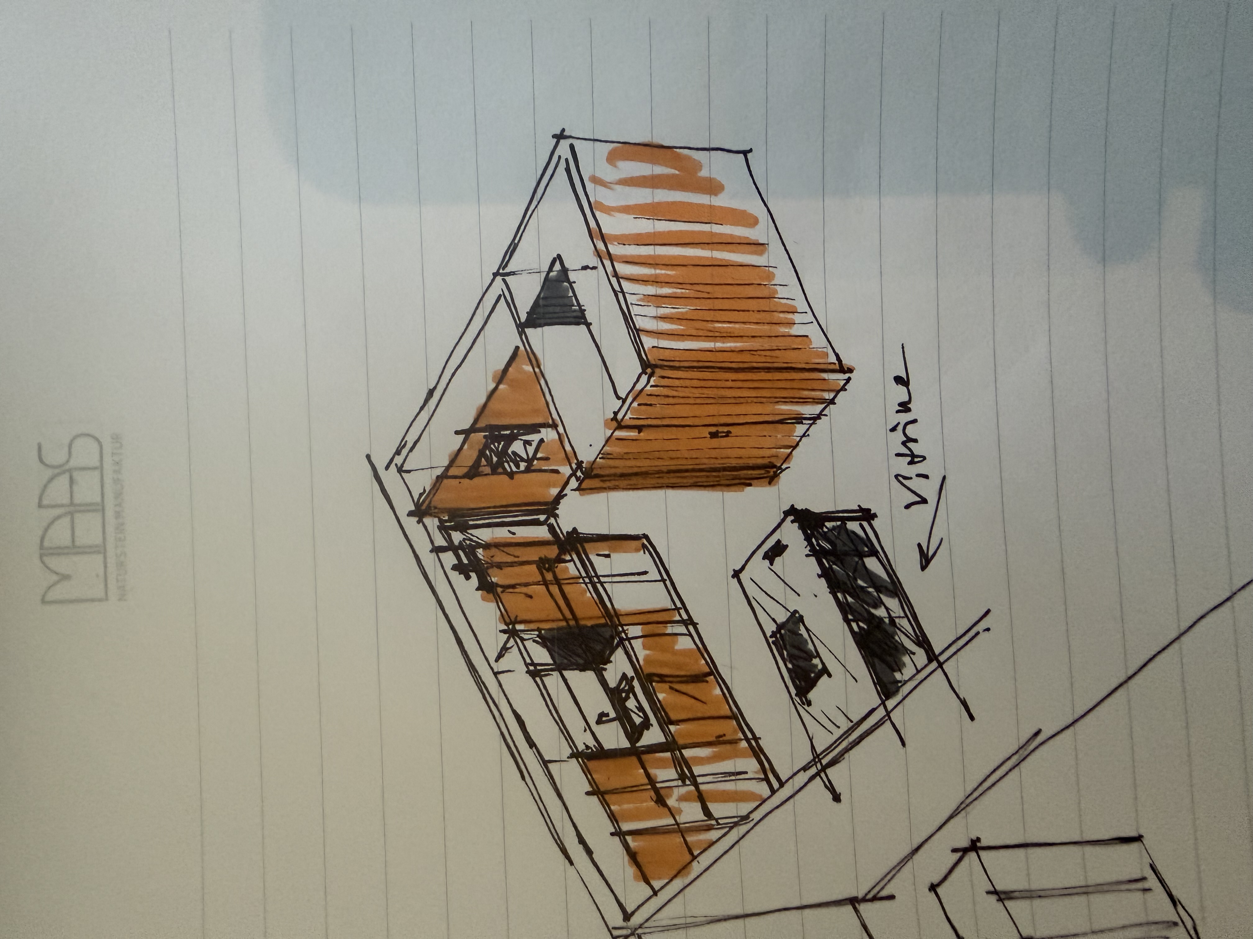 modernist exterior shot 3d render of a modern kitchen layout with sleek cabinetry the cabinets are a rich warm orange wood reflecting a natural and elegant texture the countertops are a smooth dark graphite giving a contemporary feel the design includes a prominent island at the center the entire scene is illuminated with soft ambient lighting creating a cozy and inviting atmosphere the background is a subtle off white to enhance the brightness and spaciousness of the room architecture