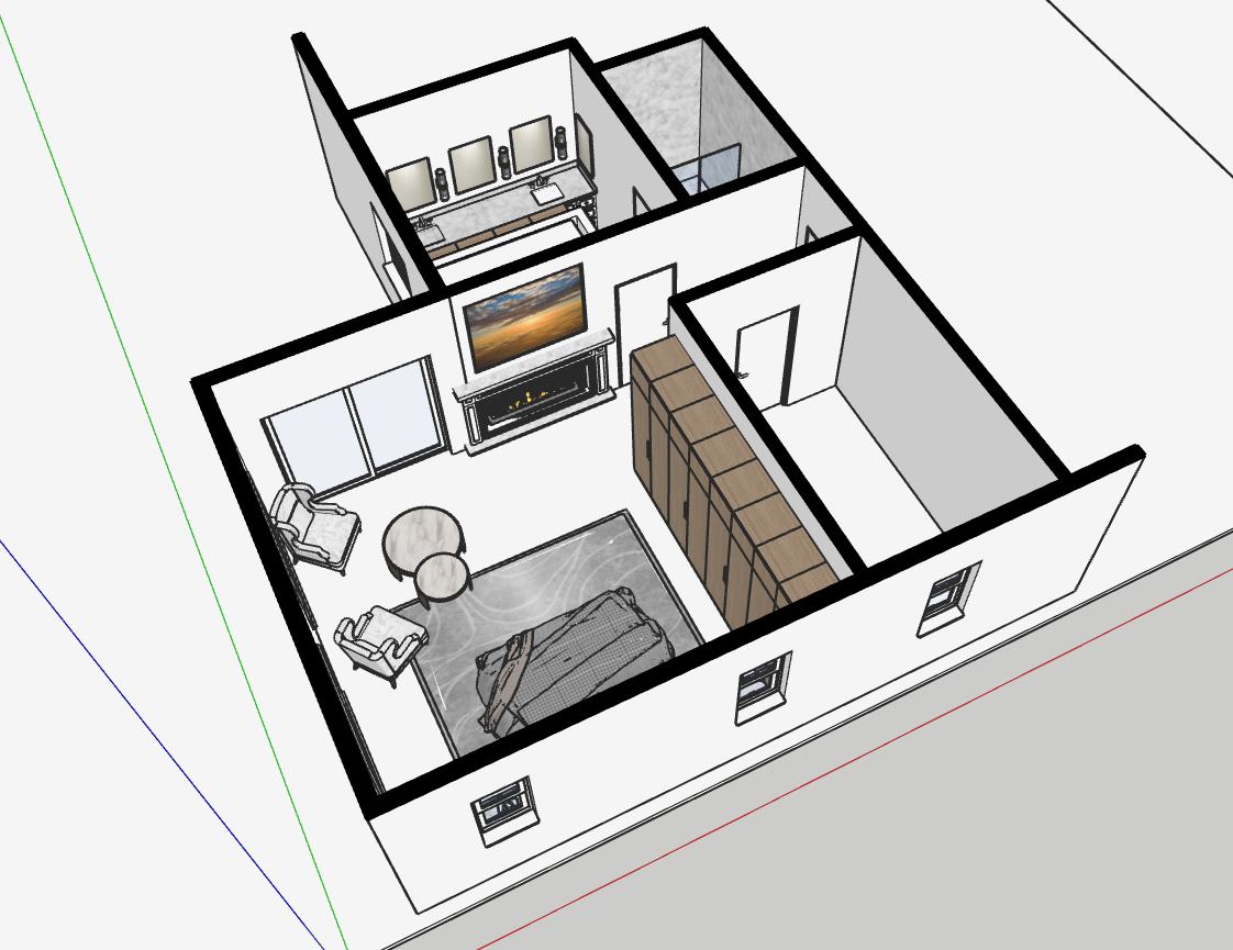 render this 3d interior this is on a second floor