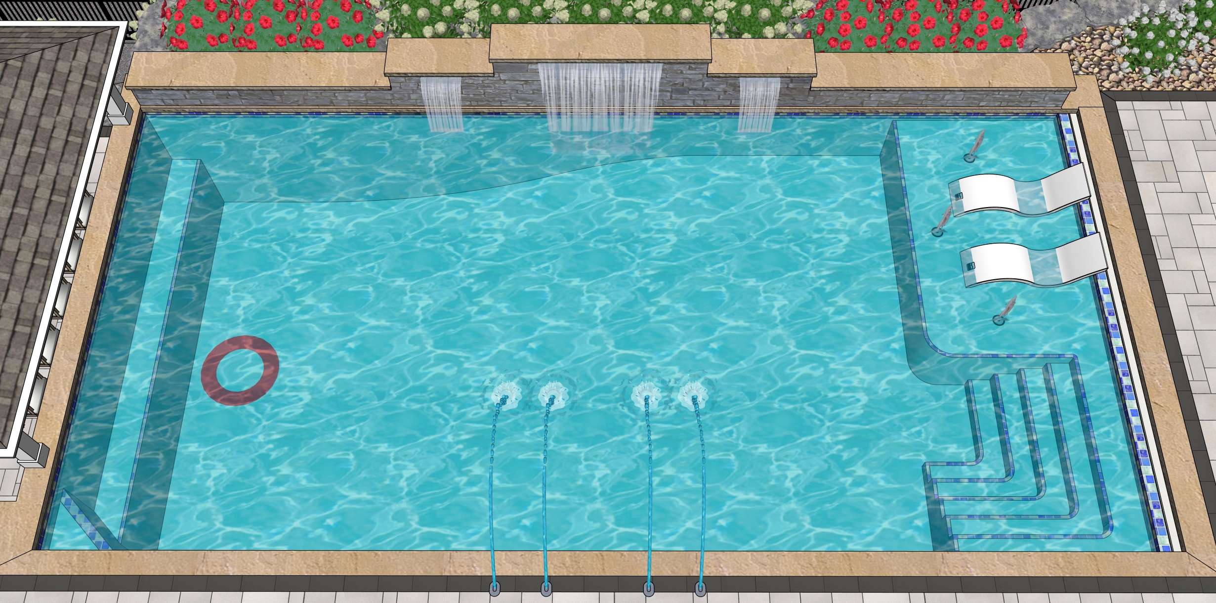 create a photorealistic exterior rendering from this sketch up view use realistic materials accurate scale and natural proportions apply soft daylight with realistic shadows global illumination and subtle reflections enhance textures without changing geometry maintain the original camera angle and composition produce a clean professional real world visualization