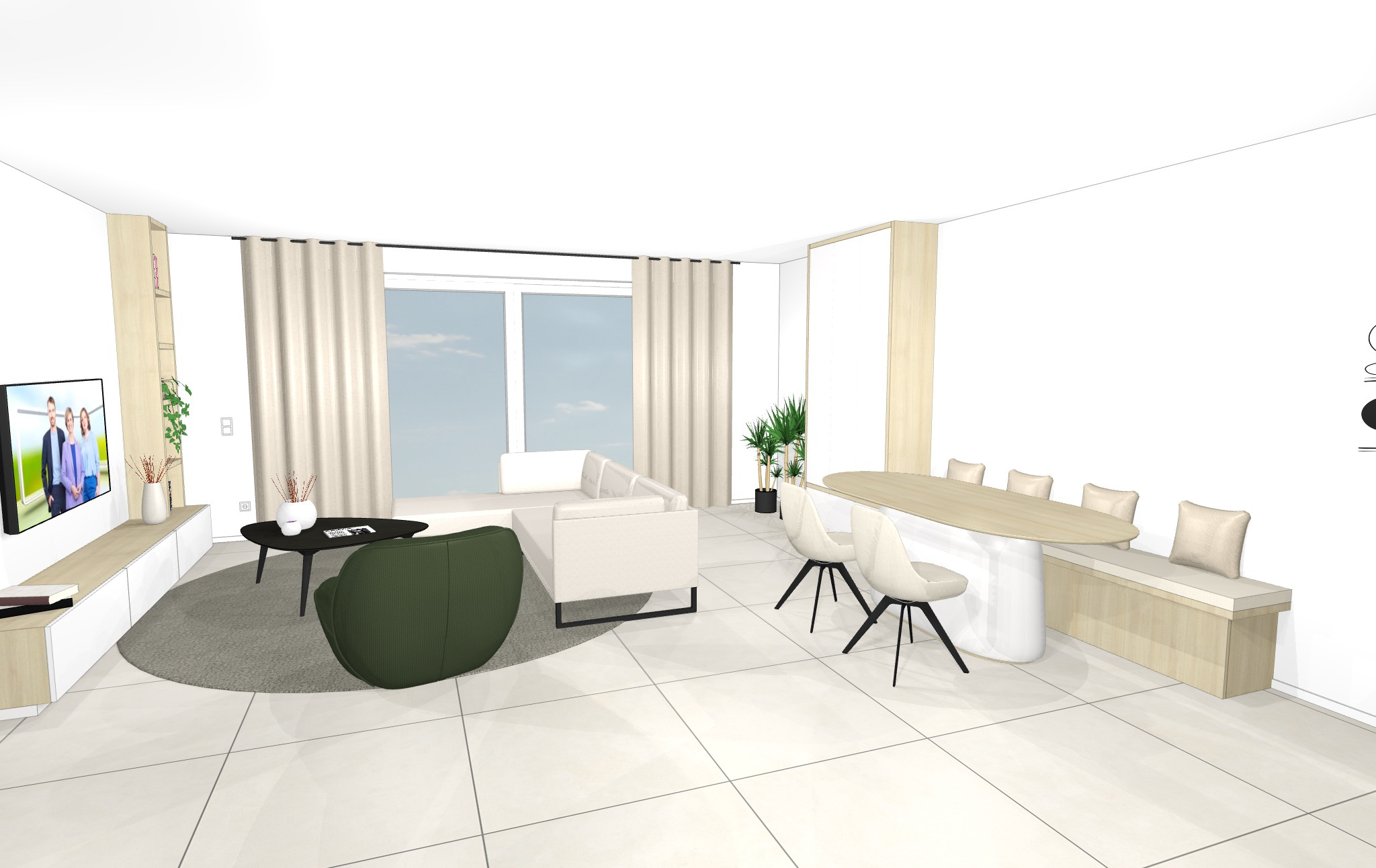kast onder tv is in witte kleur tevens ook hoge kast aan de rechtse kant
