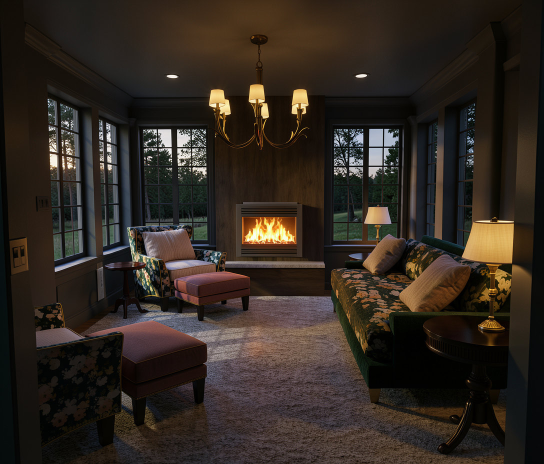design the exterior of this house selecting colours that match the previous prompt for the front side of the same house the window should be black the roof is steel