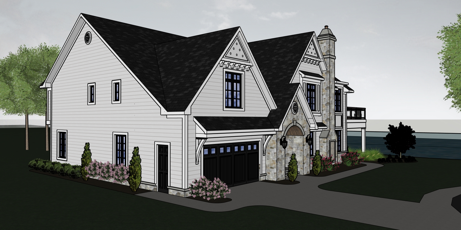 partly cloudy sky add gutters and downspouts on house lake erie in background