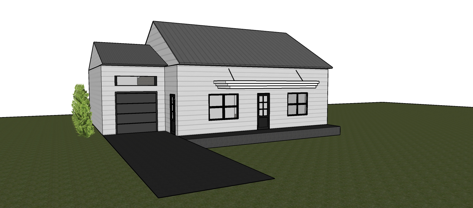 conserver la geometry les couleurs le canexel gris pale le petit toit gris pale avec un peu d amenagement de plantes