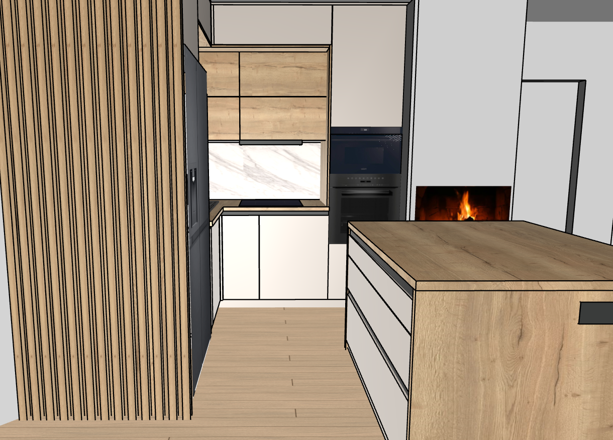 modern kitchen with two stool and kitchenisland backlighting no sun no led strips on the top cabinets no lights on the kitchen island