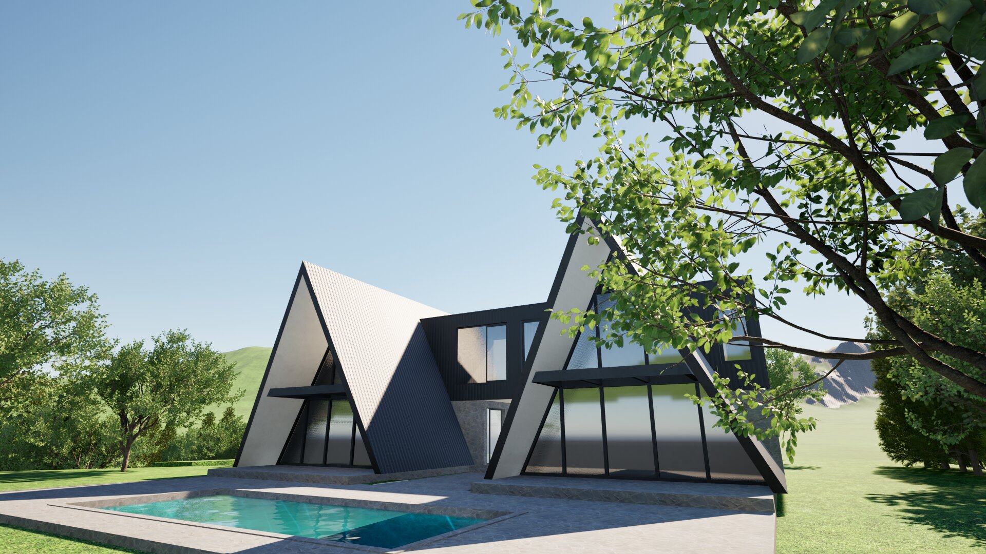add more realistic details people are swimming and sunbathing pool is 4m brigt and 12m long