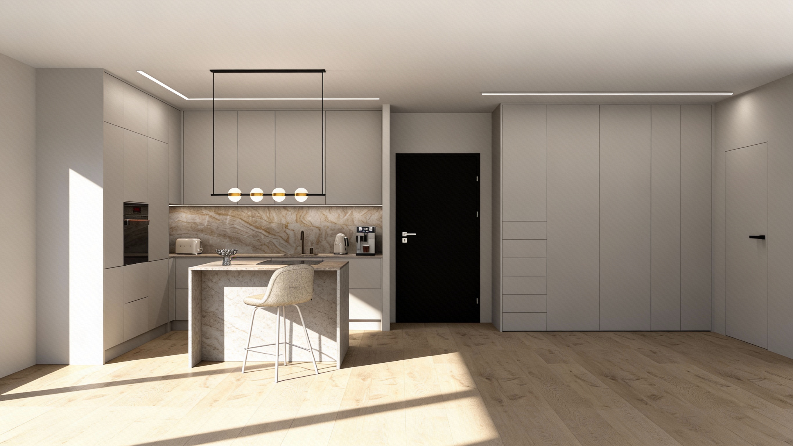 hardwood flooring and add cabinets on the kitchen