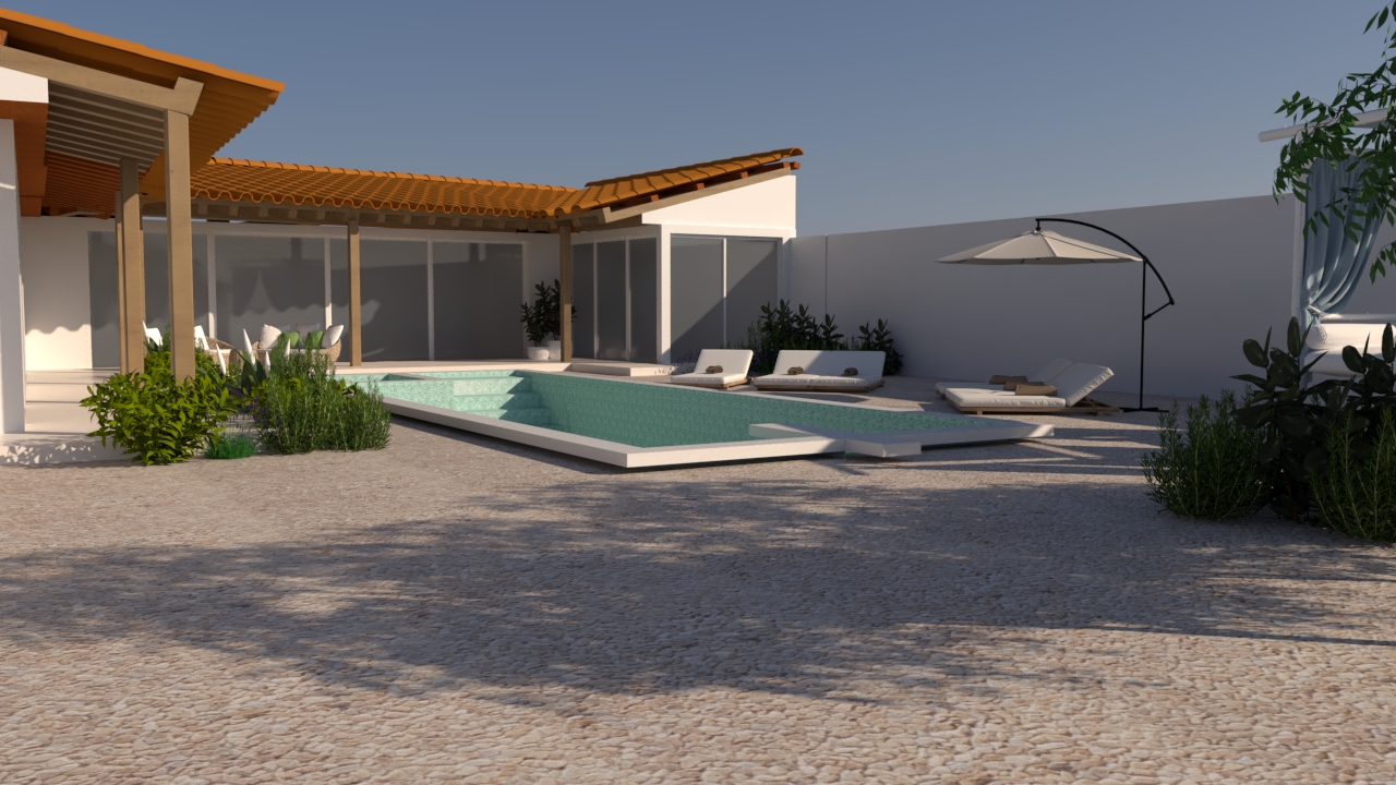 por favor faz um render muito fiel a imagem ao fundo na sala do lado direito esta um gin sio o piso a volta da piscina piso pavidren da globalpav referencia 012 mais claro quase banco e as estrutura da janelas branca o piso piso permeavel da globalpav por favor retira a sdala que acrecentaste retira o piso que puseste a volta da piscina