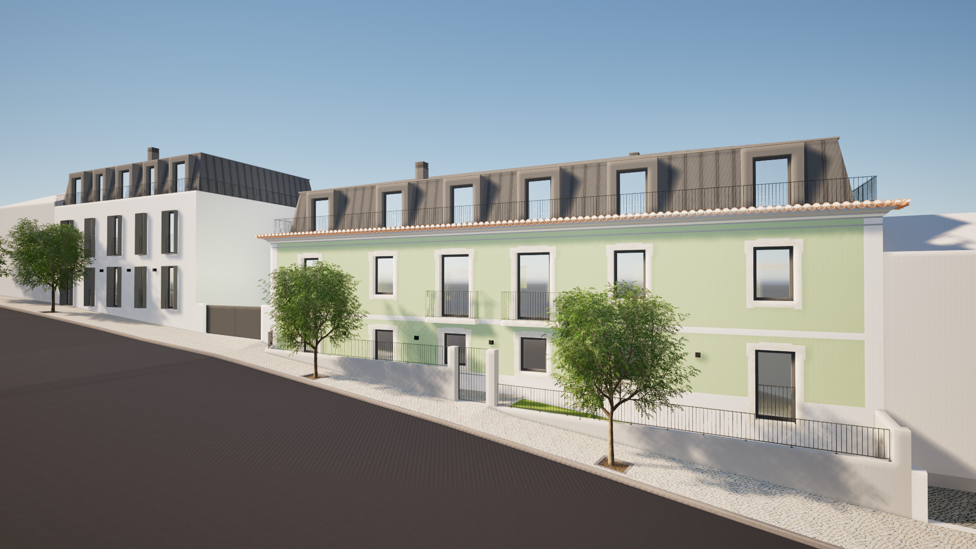 faz uma cena noturna e coloca ilumina o na fachada