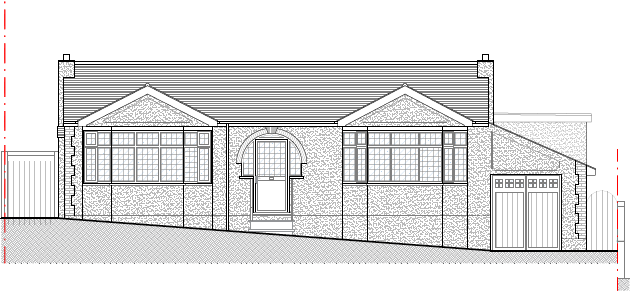 photorealistic uk residential side elevation render apply materials only to the provided geometry do not change proportions roof pitch ridge height window size or massing materials muted natural red clay interlocking roof tiles matte finish subtle weathering brown undertone cream fine grain external render red brick plinth detail stepped red brick quoin detail at corner white upvc windows with obscure glazing to first floor blocked up opening fully blended into render realistic british daylight professional architectural visualisation material realism only no redesign