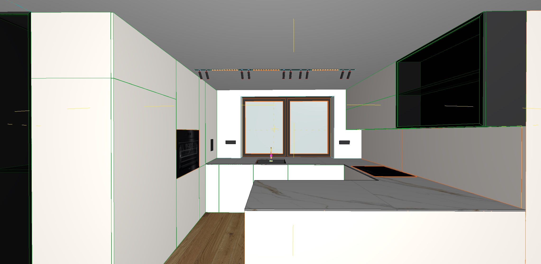 vreau sa nu schimbi nimic din geometyria bucatariei vreau sa pui prize realiste si blatul sa fie din ceramica de 12mm de la materia ceva deschis ca travertinul fronturile vreau sa fie un coconut