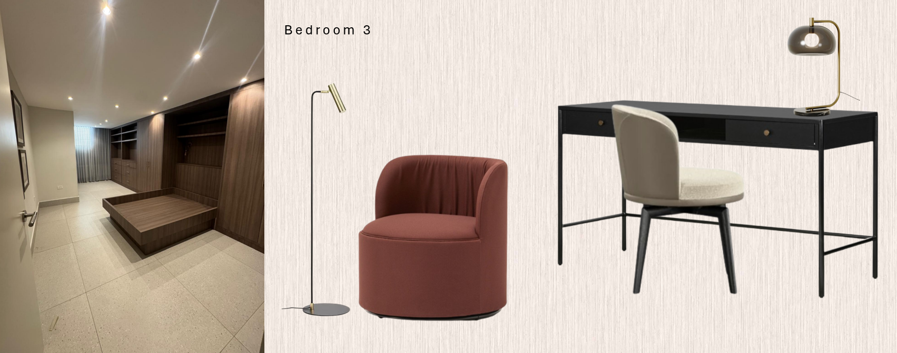 in the design board is the floor plan with the items distribution also please add mattress and bedding to the bed space