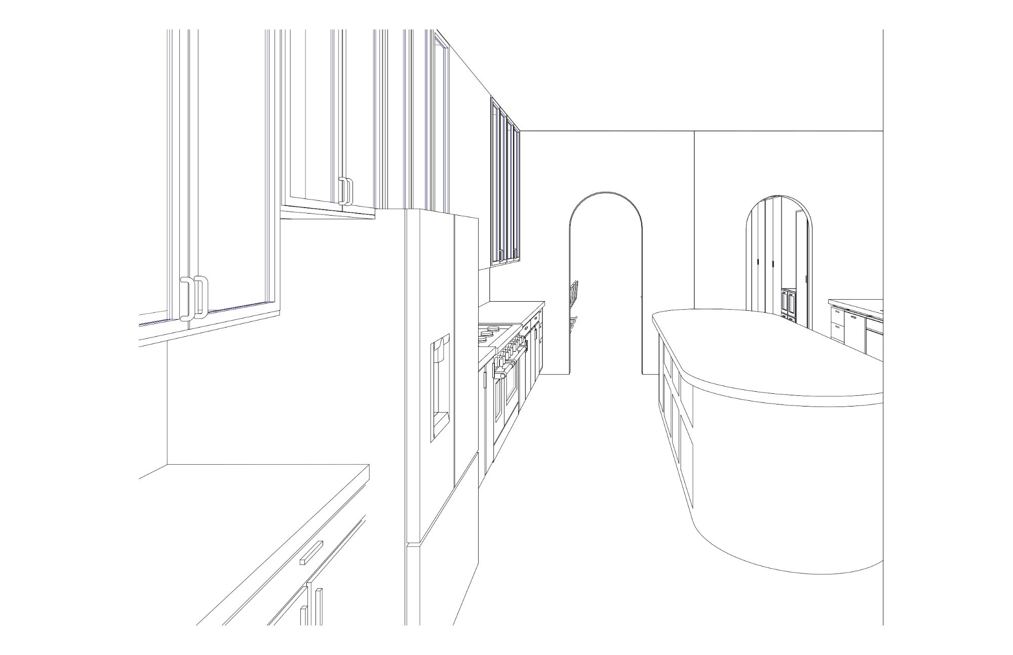 interior shot use the herringbone pattern for the floor the upper cabinets should be the black metal with reeded glass apply the dark paint to the bottom cabinets use the marble only for the countertops
