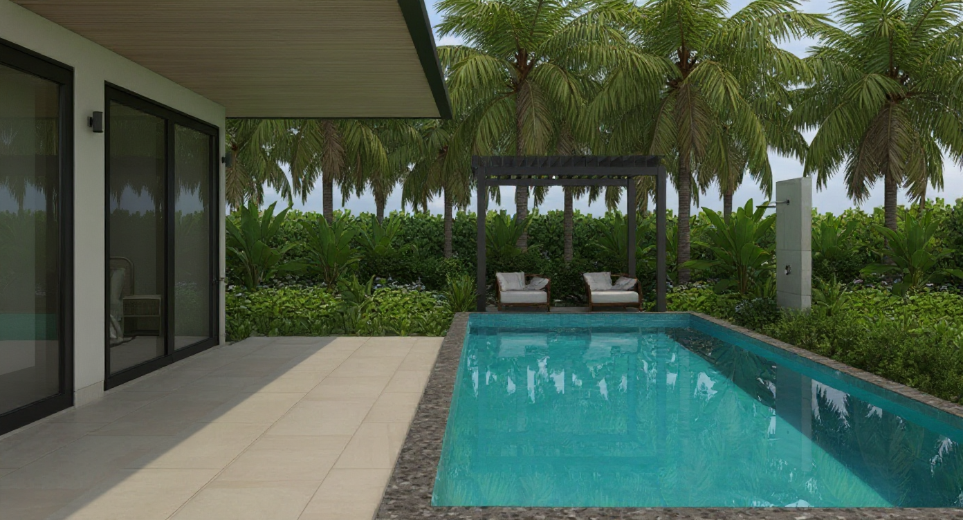 mid century modern exterior with white stucco and wood accents black roof frames black window trims with mature olive trees and wide branches california native landscape street view in dramatic evening setting in pacific palisades hills ocean beyond